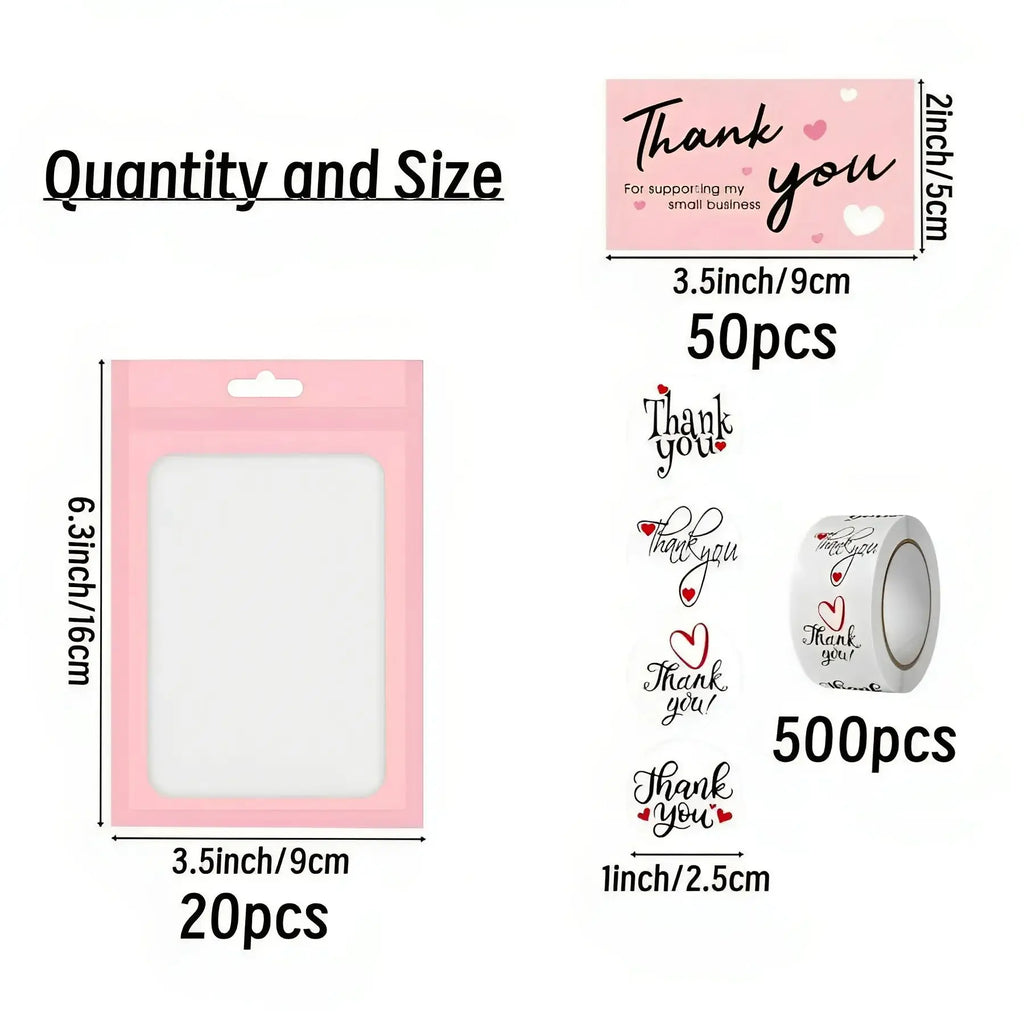 570 Pieces Thank You Business Cards Stickers Kit, Include 50pcs Thank You Business Card 500pcs Thank You Stickers 20pcs Resealable Packaging Bags, Suitable For Business Owners