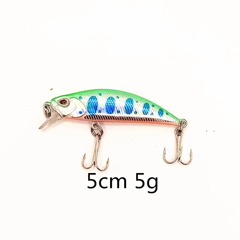 Colorful Fishing Lure with 3D Eyes, Sinking Minnow, Laser Trolling, Plastic Buzz Bait, 2 Treble Hook, 5G, 5cm, 1Pcs