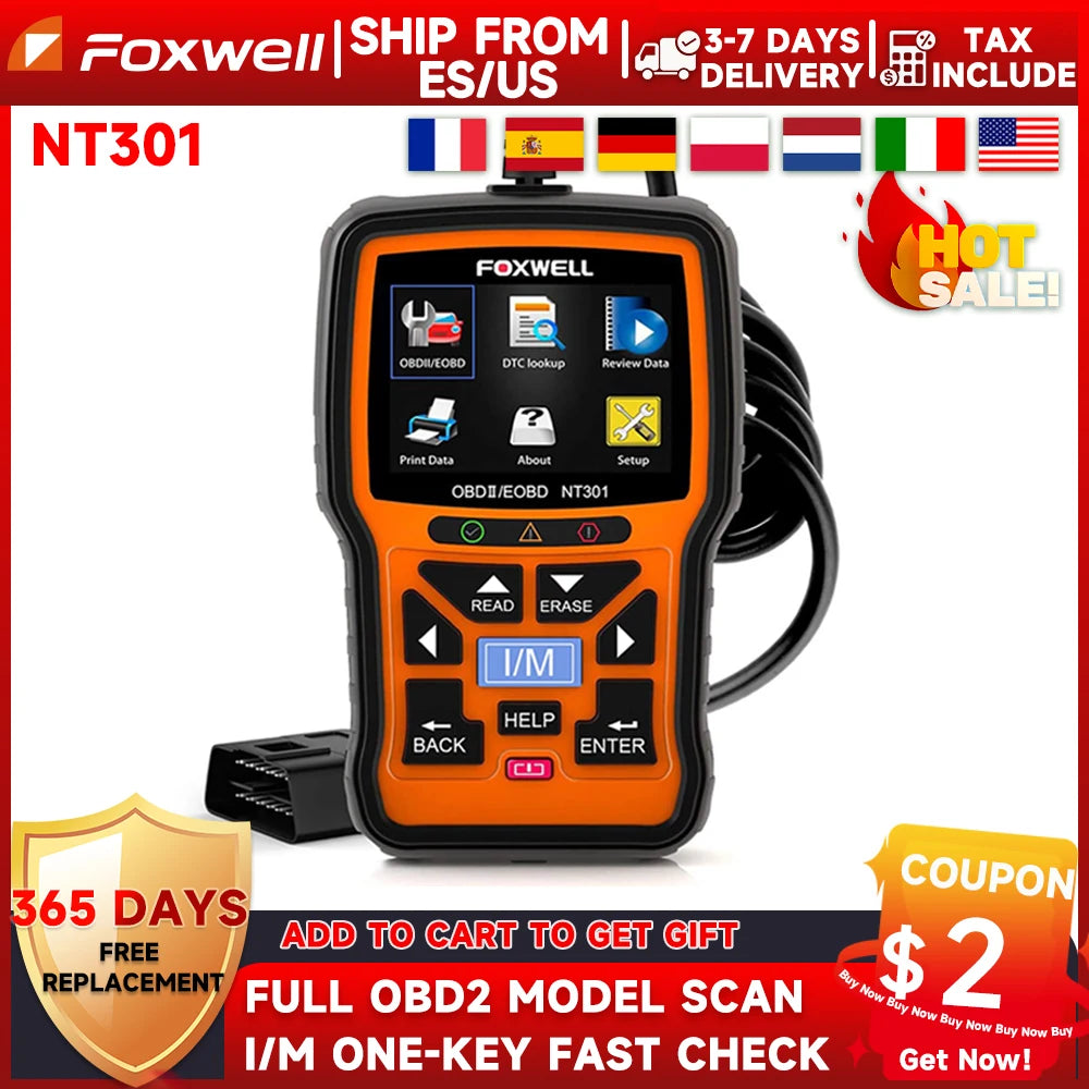 The Foxwell NT301 obd2 code scanner can read and erase codes which can also retrieve a wealth of information from the Engine Control Unit (ECU). The ECU is what triggers the Check Engine Light when there is a problem with your car. Parts might cause your check engine light on include: