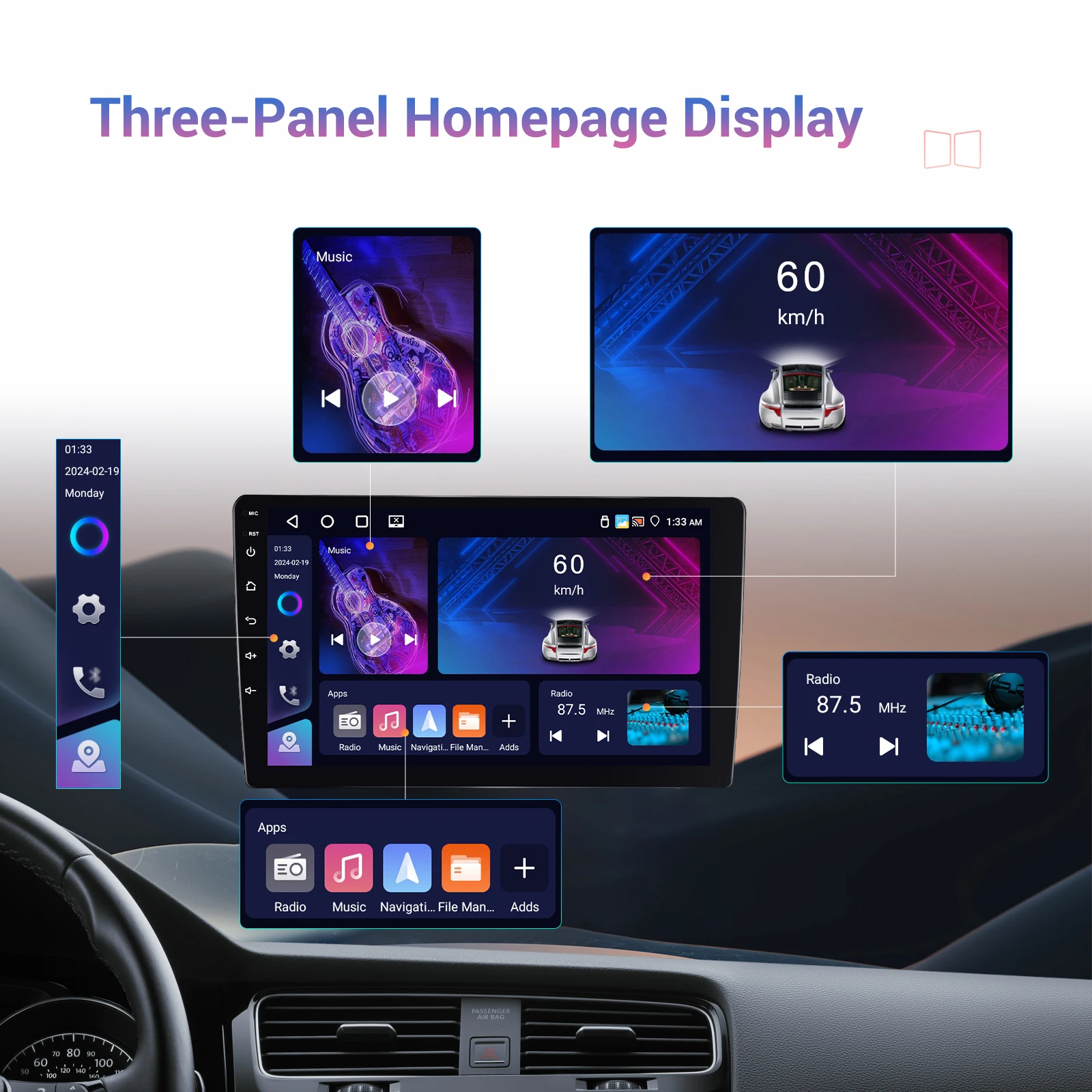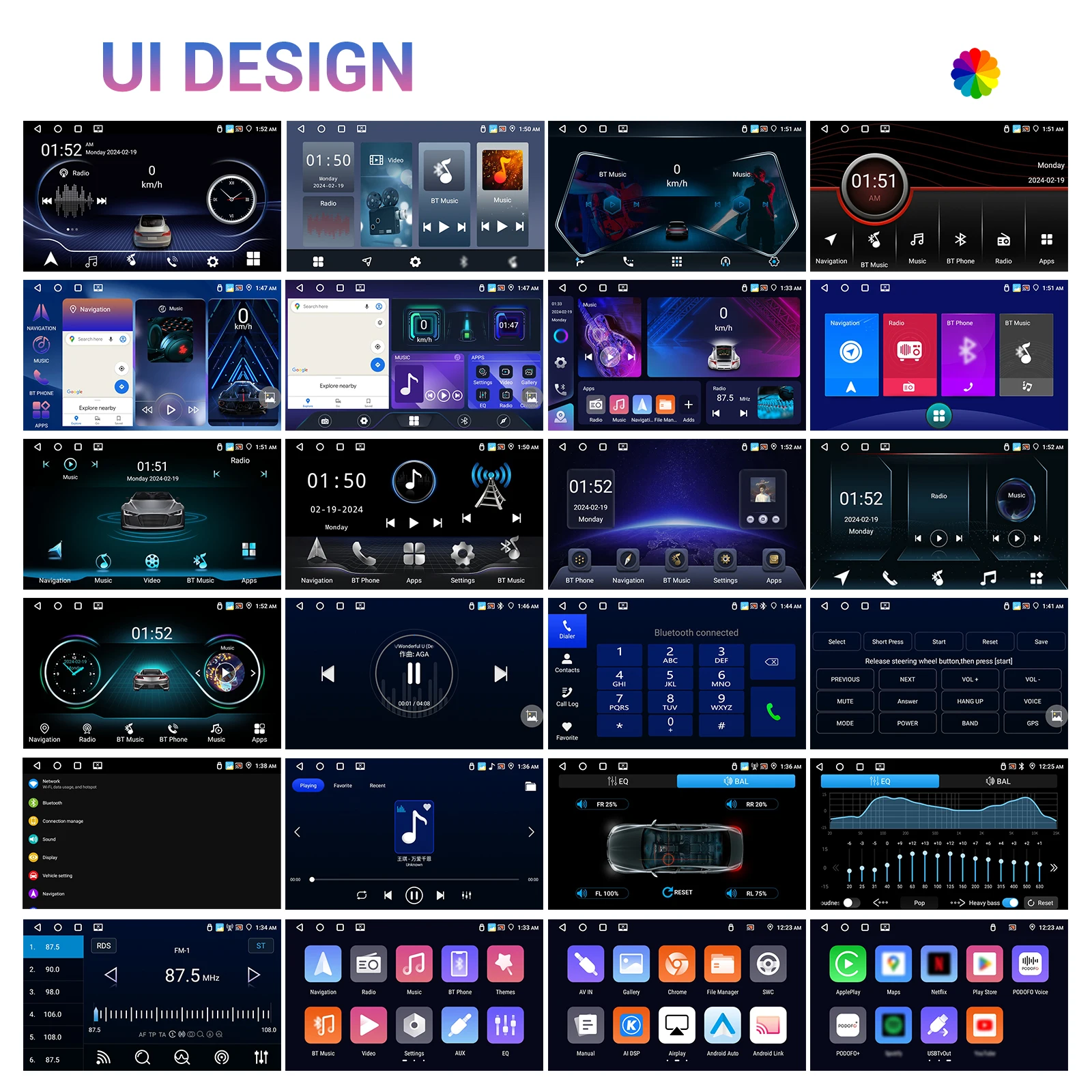 ● AI DSP:Eight mainstream sound effects designed for car scene create the ultimate hearing experience such as 3D optimized, 5.1 Panorama, HiFi scene, etc, whichcan support more than 10 million car models. (Optional activation)