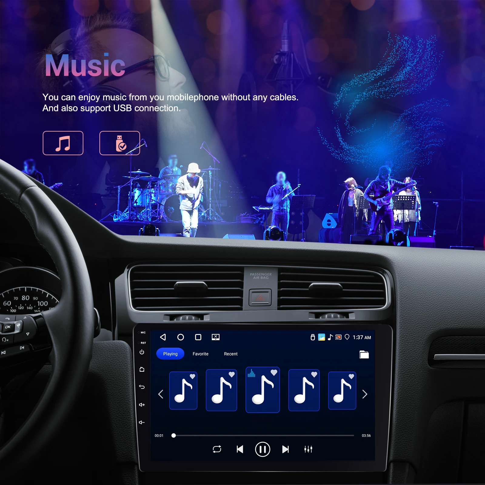 ●FM/RDS Radio: Receive radio signals from various stations with clear sound and quality. Listen to music, newsletters and traffic information anytime.