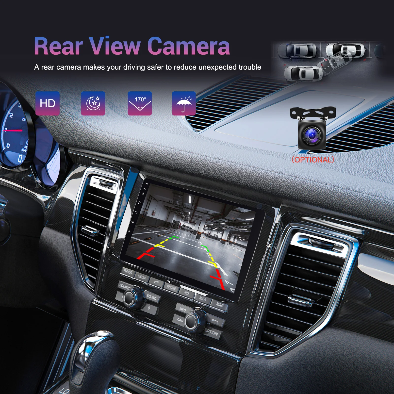 ● Support reversing camera/driving recorder/MIC(Optional purchase): Connect a reversing camera to the device via video input port, and view the rear view of your car on the show's screen when you shift to reverse gear. This helps you park safely and avoid hostels. You can also connect a driving recorder to record your driving journey or a microphone to strengthen your voice quality during calls.