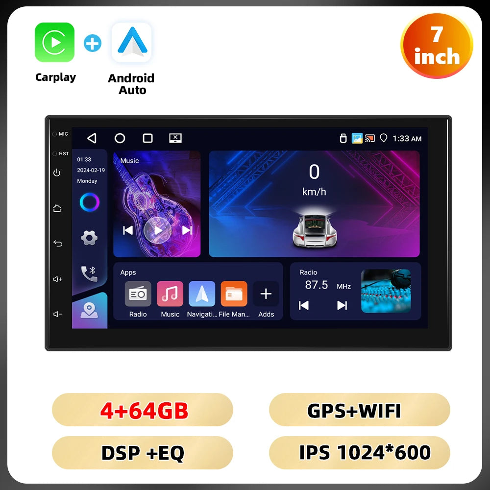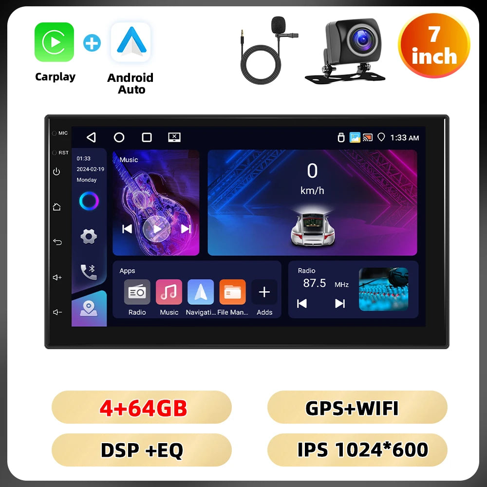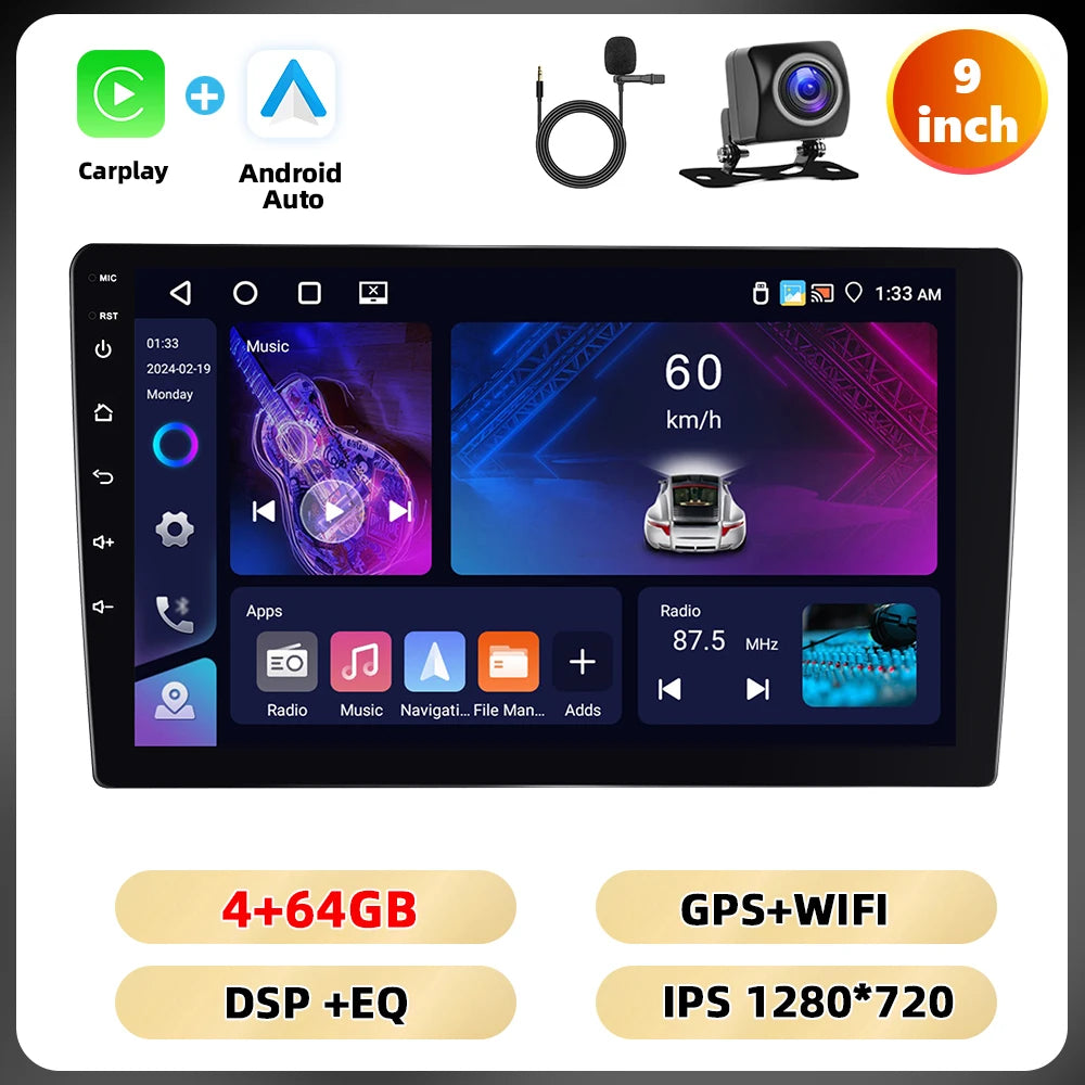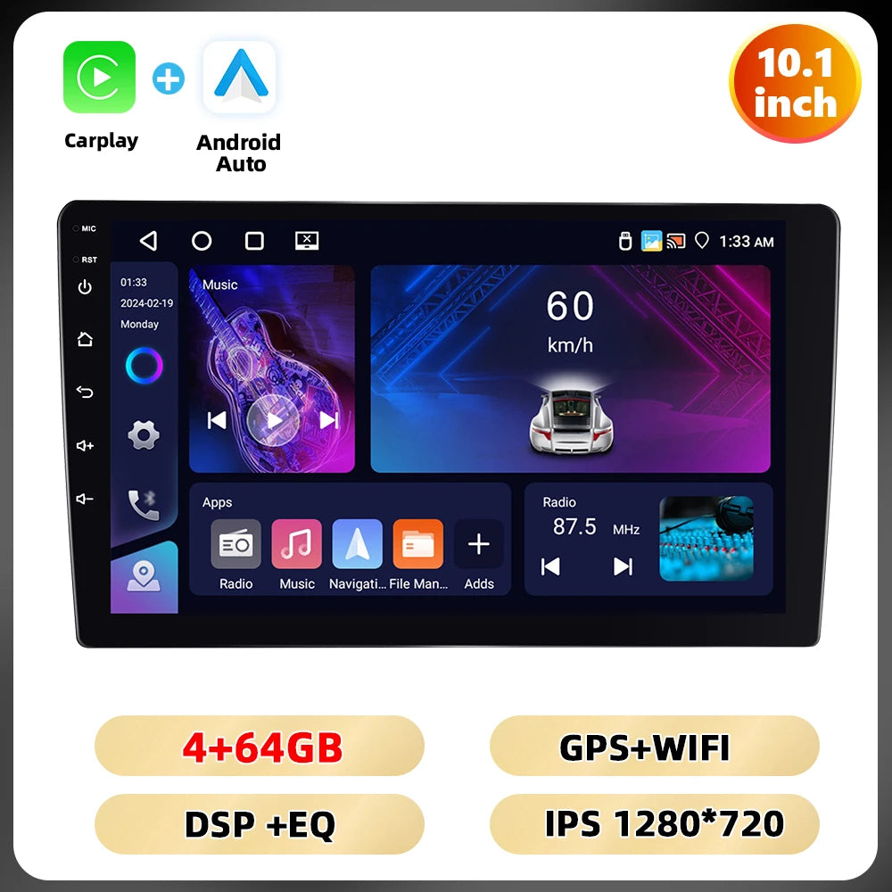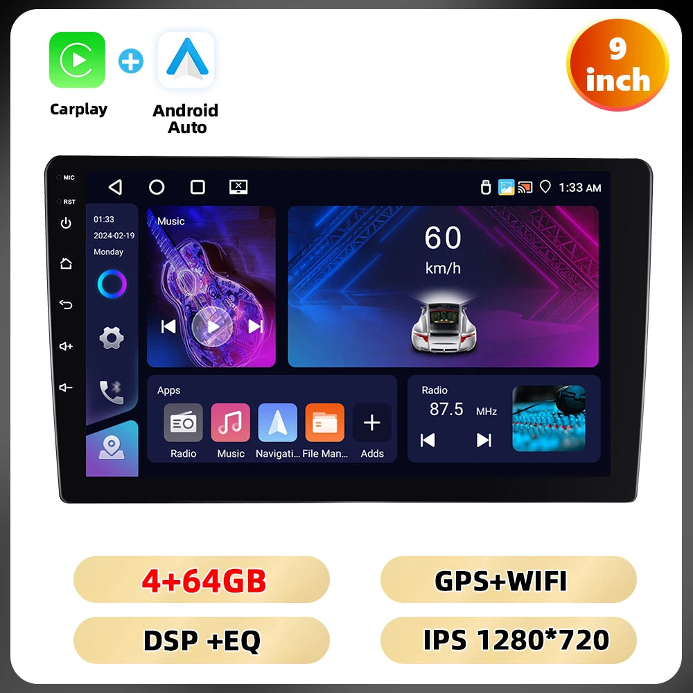 Podofo 4 + 64G 7 ''/9''/10.1 ''Car Radio Universal Android Multimedia Player WIFI GPS Navigation Carplay Android Auto DSP Car Audio