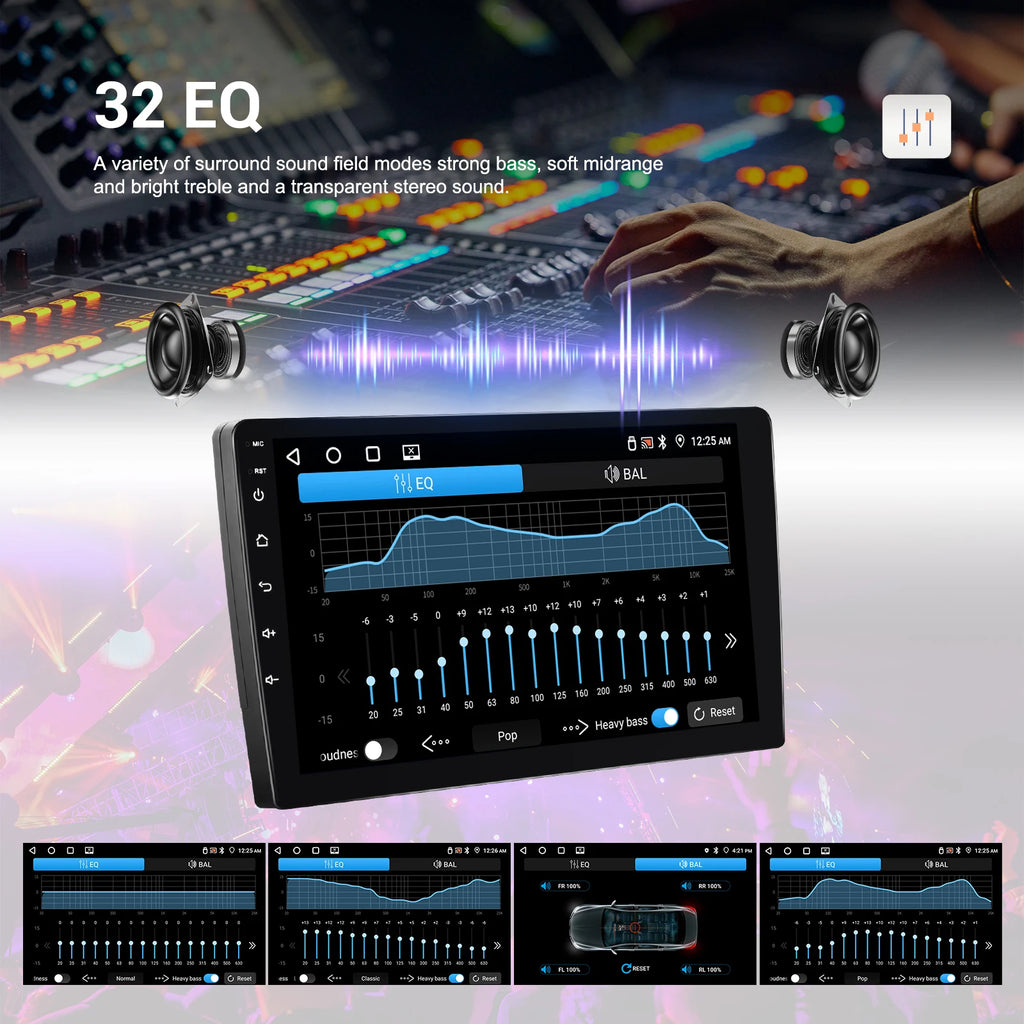 ● A variety of EQ sound effects scene selection:32 frequency division adjustment shocking surround panoramic, sound to list to every music scene
