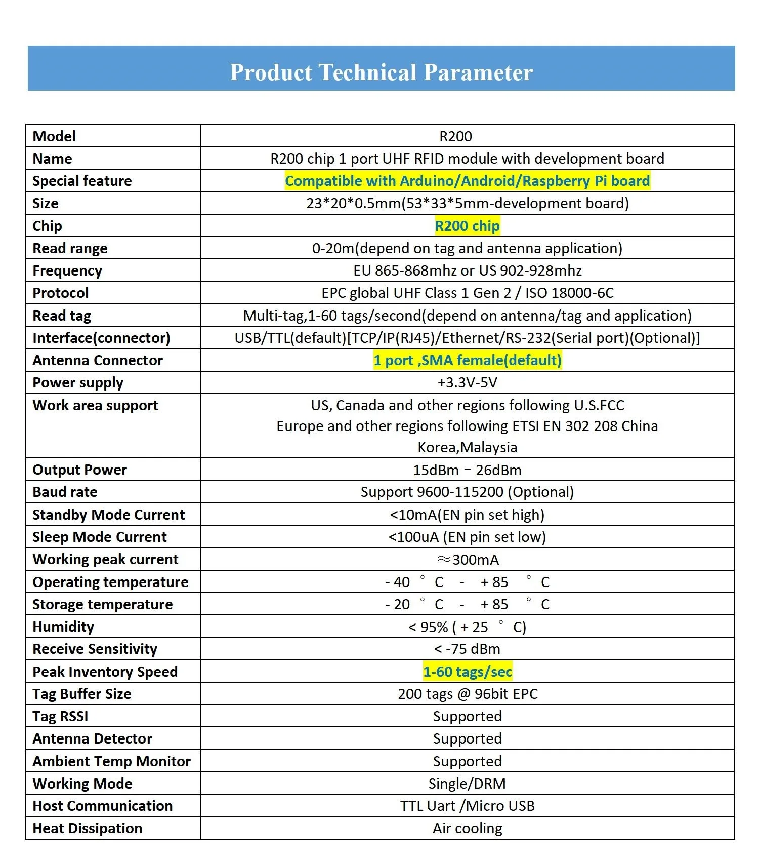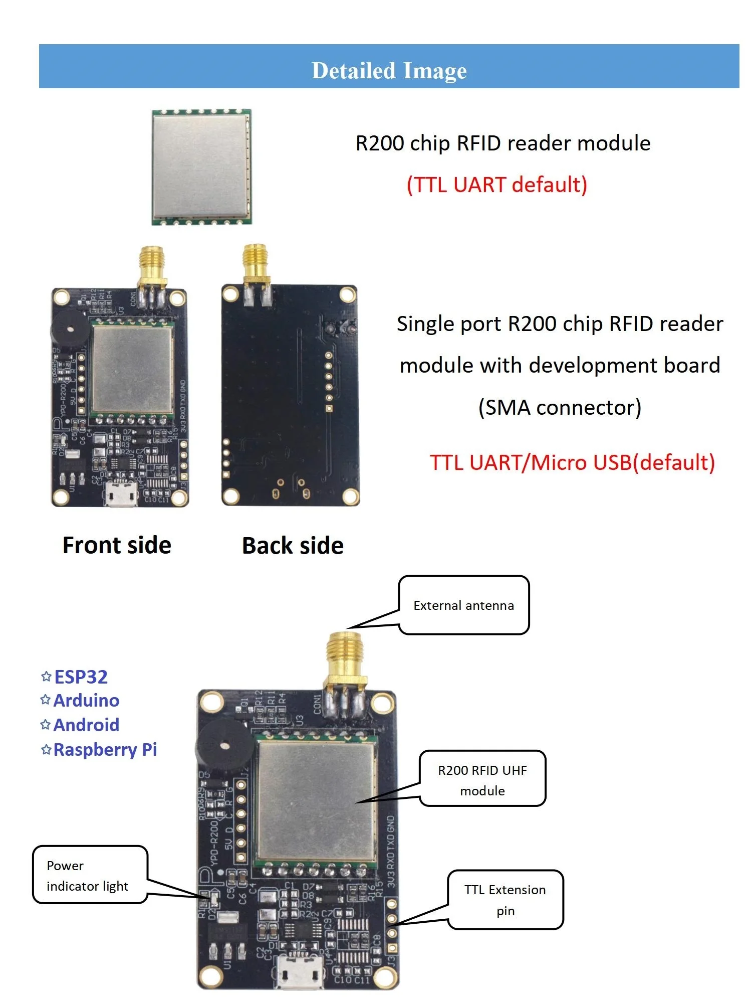 R200 Chip 2M Range UHF RFID Module TTL Uart USB RFID UHF Reader/Writer Compatible with 0-12dbi RFID Antenna ESP32 Raspberry Pi