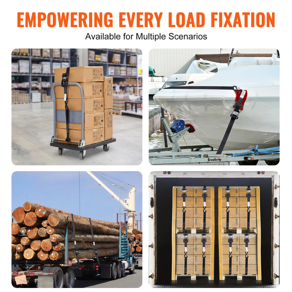 Versatile Application: SucceBuy ratchet straps provide durable and reliable security for transporting various small and large objects, including motorcycles, canoes, kayaks, ATVs, boxes, boats, furniture, lawn equipment, heavy machinery, and other cargo via truck beds, trailers, or roof racks.