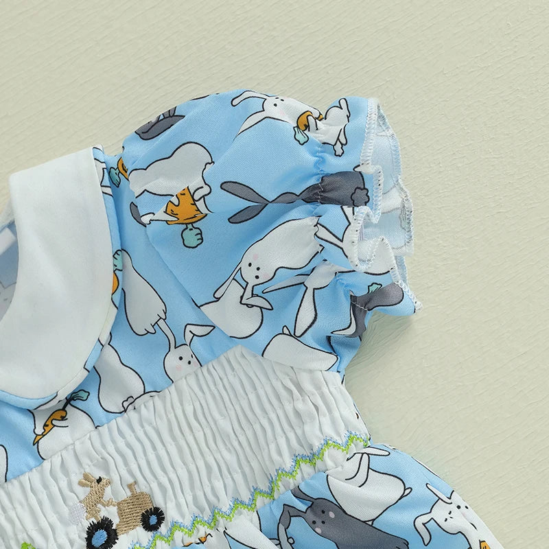 Baby Girls Rompers Easter Clothes Rabbit Print Doll Collar Short Sleeve Summer Bodysuits JumpsuitsSize (cm)