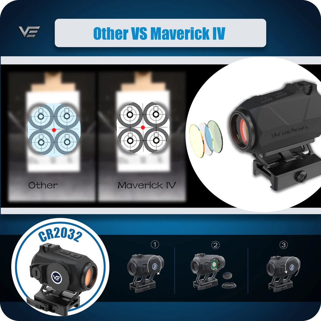 Vector Optics Maverick-IV 1x20 Mini Rubber Armored Reflex Sight Red Dot Scope Compact Size With IP67 For AK AR 15 .308 12GA
