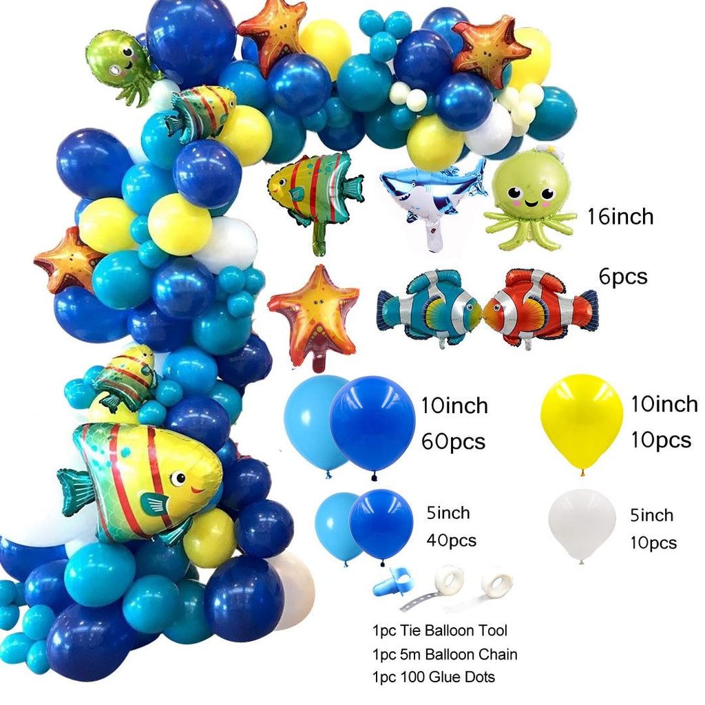 129PCS Ocean Theme Balloon Kit Cartoon Shark/Fish Under Sea Animals Balls Kids Birthday Gifts DIY Party Decoration Home Supplies