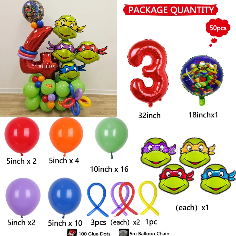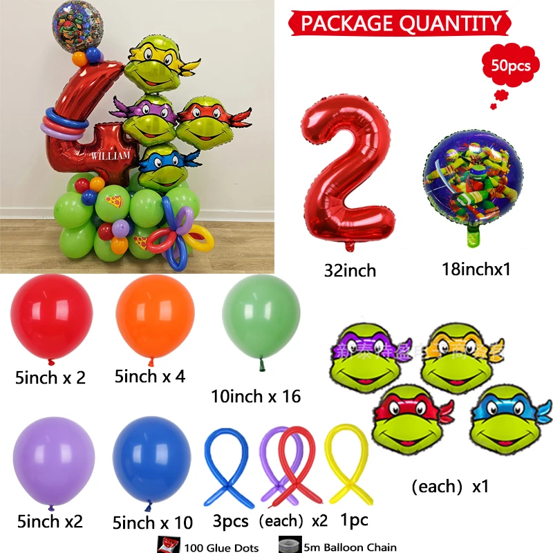 50Pcs Teenage Mutant Ninja Turtles American Animated Characters Superhero Warriors Red Numbers Birthday Party Decoration Balloon