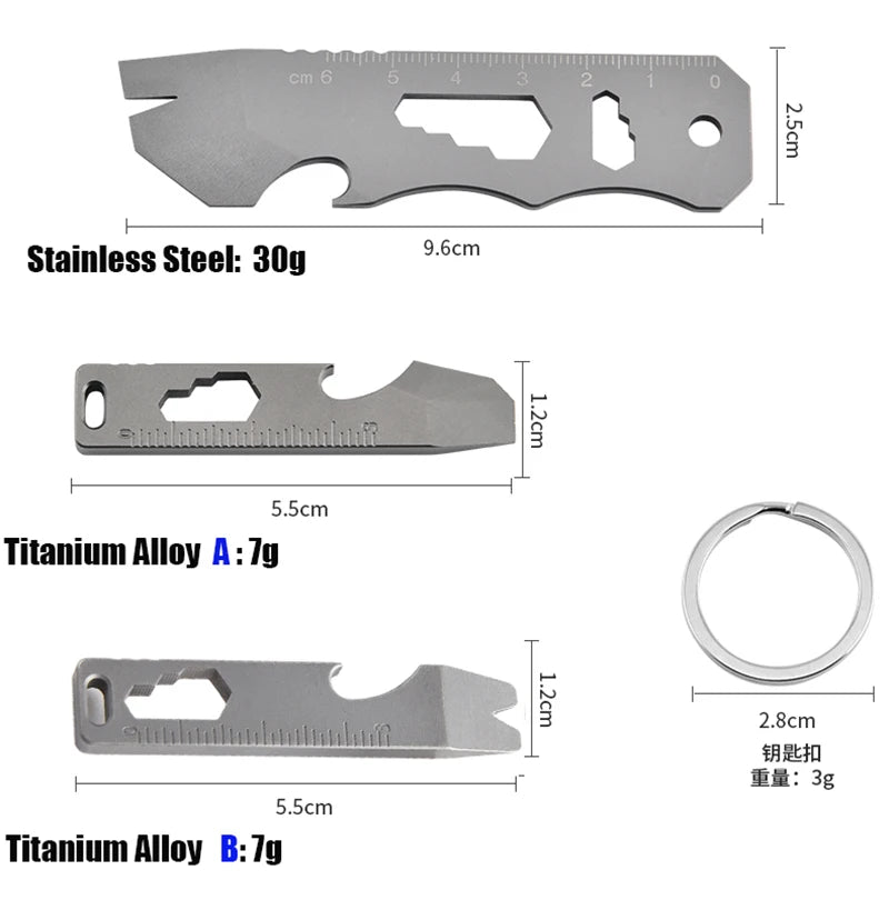 8 IN 1 MINI TC4 Titanium Alloy Crowbar Bottle Opener Graduated scale Hexagon Wrench EDC Outdoor Tools Multifunction Camping Gear