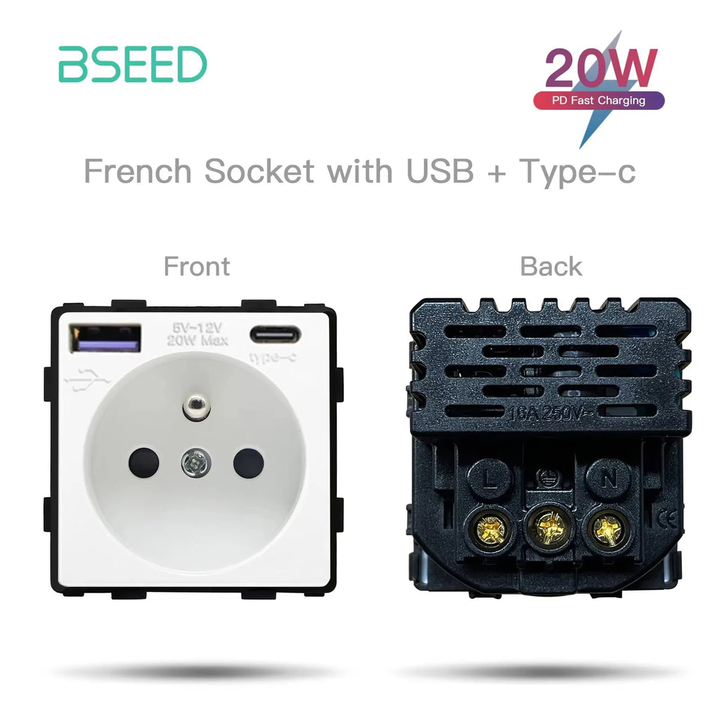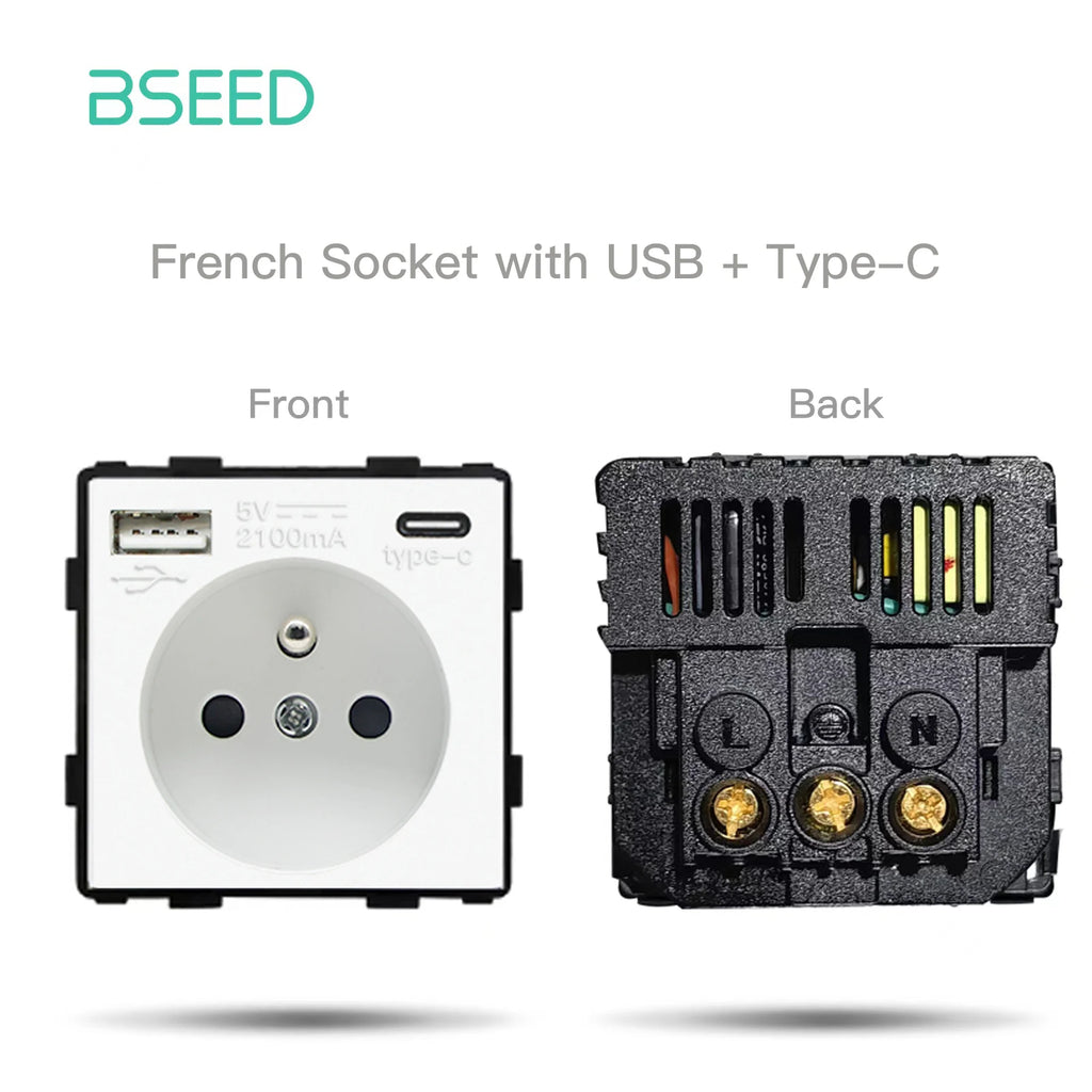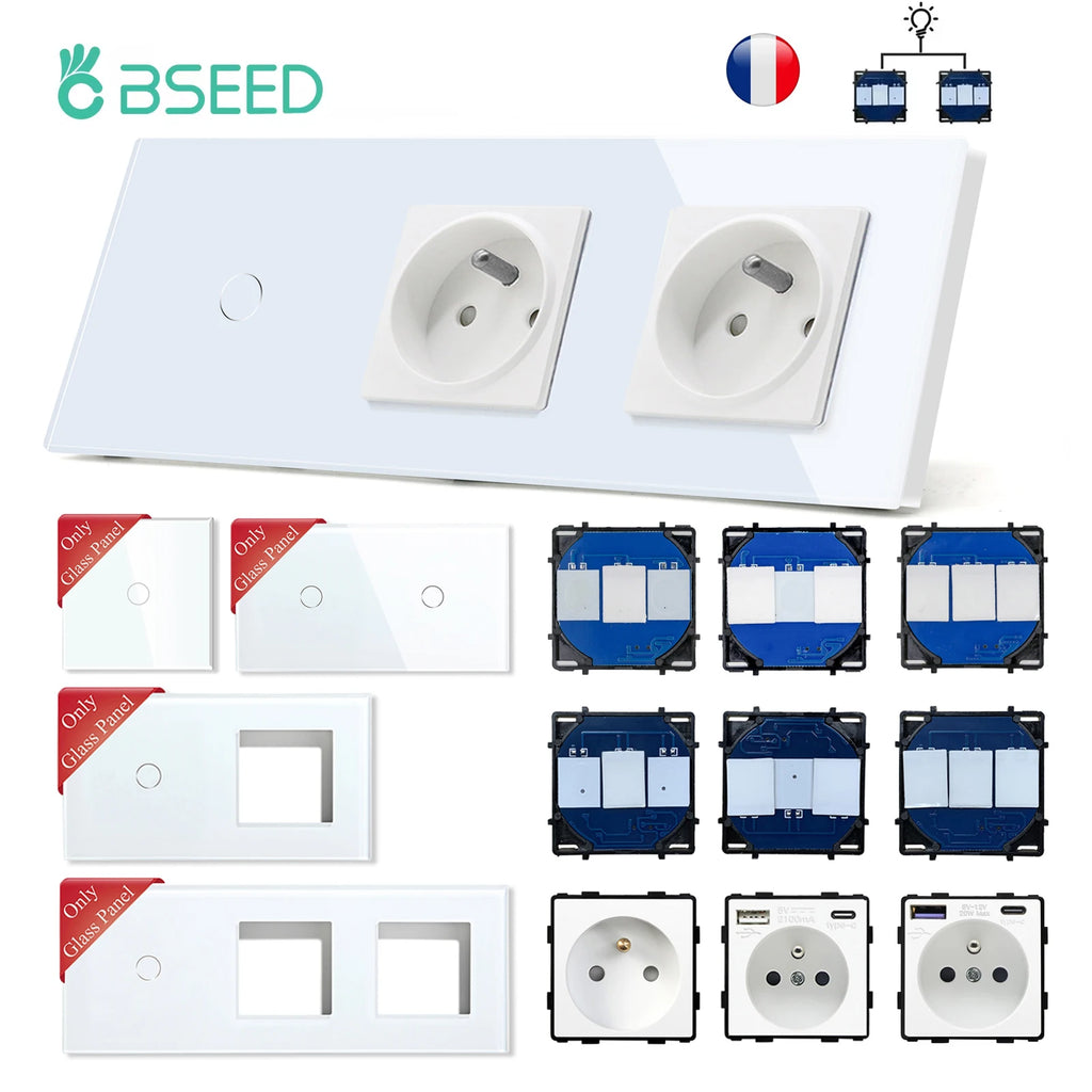 BSEED 1/2/3Gang Touch Switches 1/2/3Way Function Parts Type-c USB Wall French Sockets Crystal Glass Panels DIY Free Combination