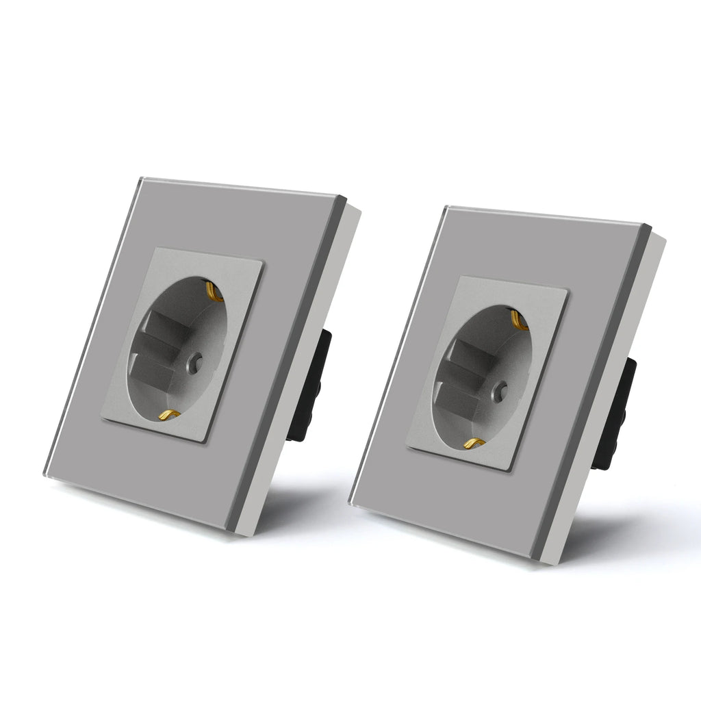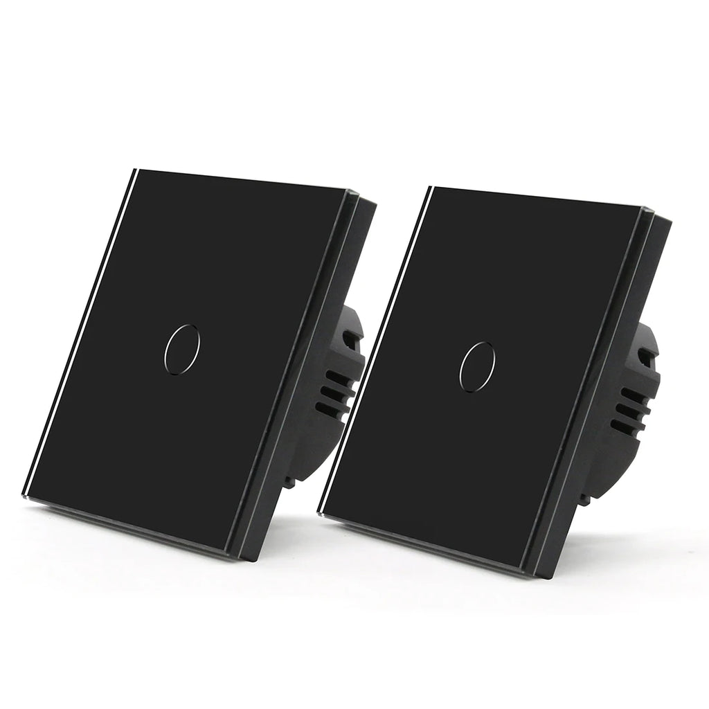 BSEED 2Pack Light Switches Wall Touch Switches 1Gang 2Way LED Sensor Tempered Glass Interrupter EU Standard Blue Backlight 240V