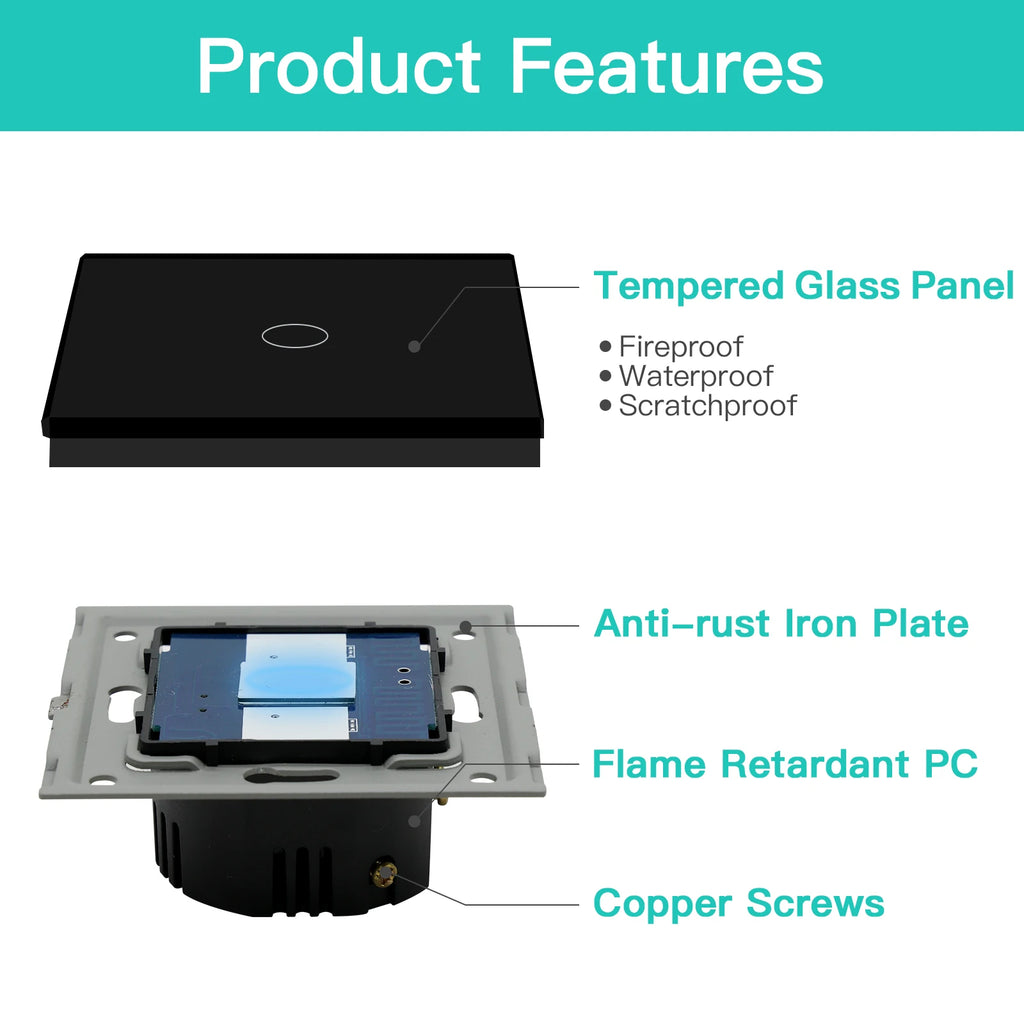 Material: Glass Panel &Iron Plate & Plastic Switch Module