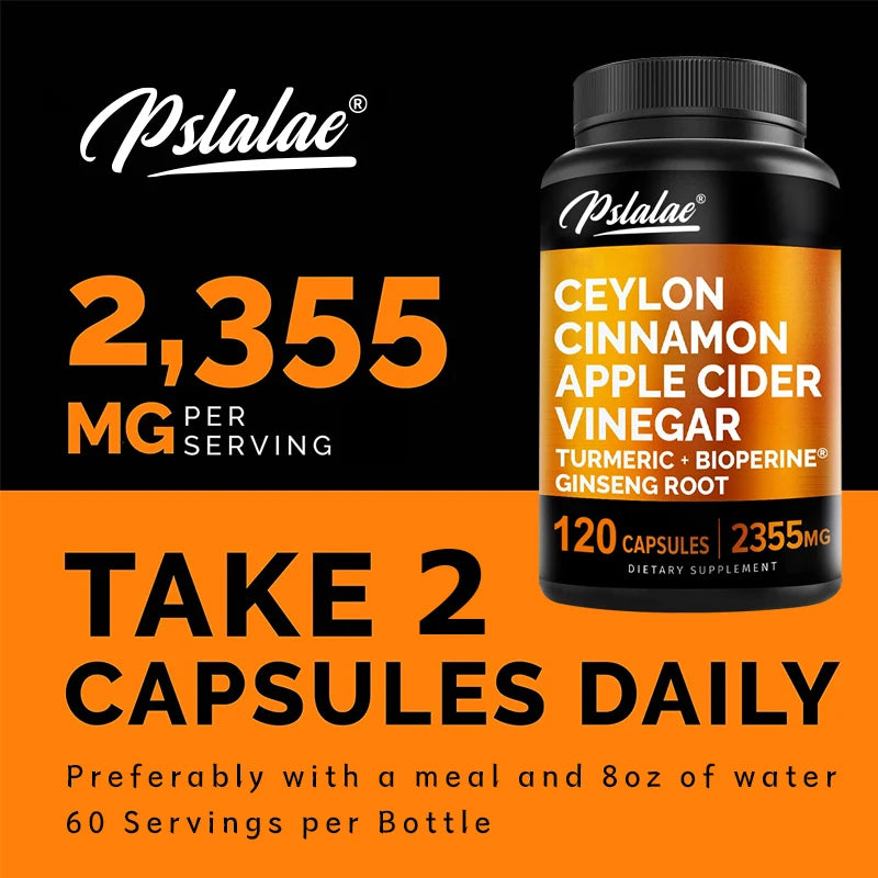Ceylon Cinnamon - with Apple Cider Vinegar, Turmeric, Bioperine, Ginseng - 120 Capsules