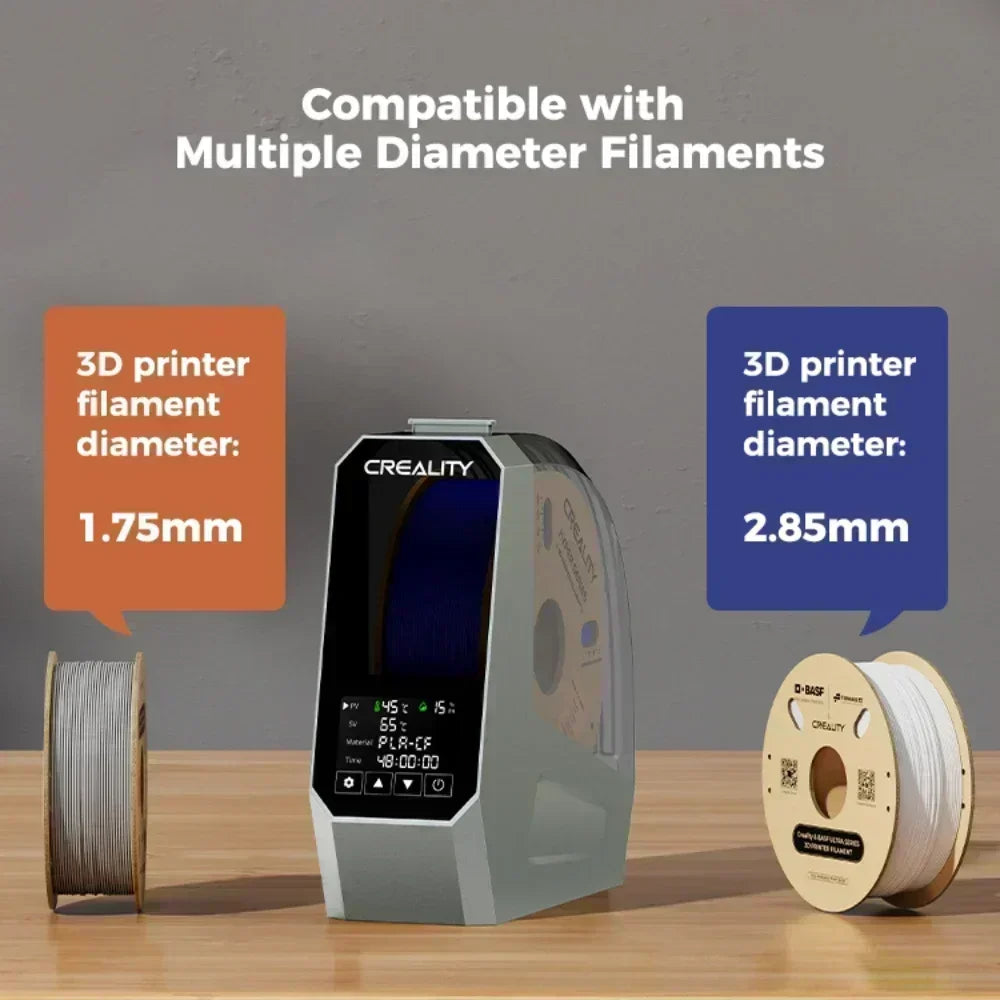 The dryer quickly heats with a built-in fan, circulating hot air 360° for uniform heating, effectively drying moisture filaments and improving printing results.