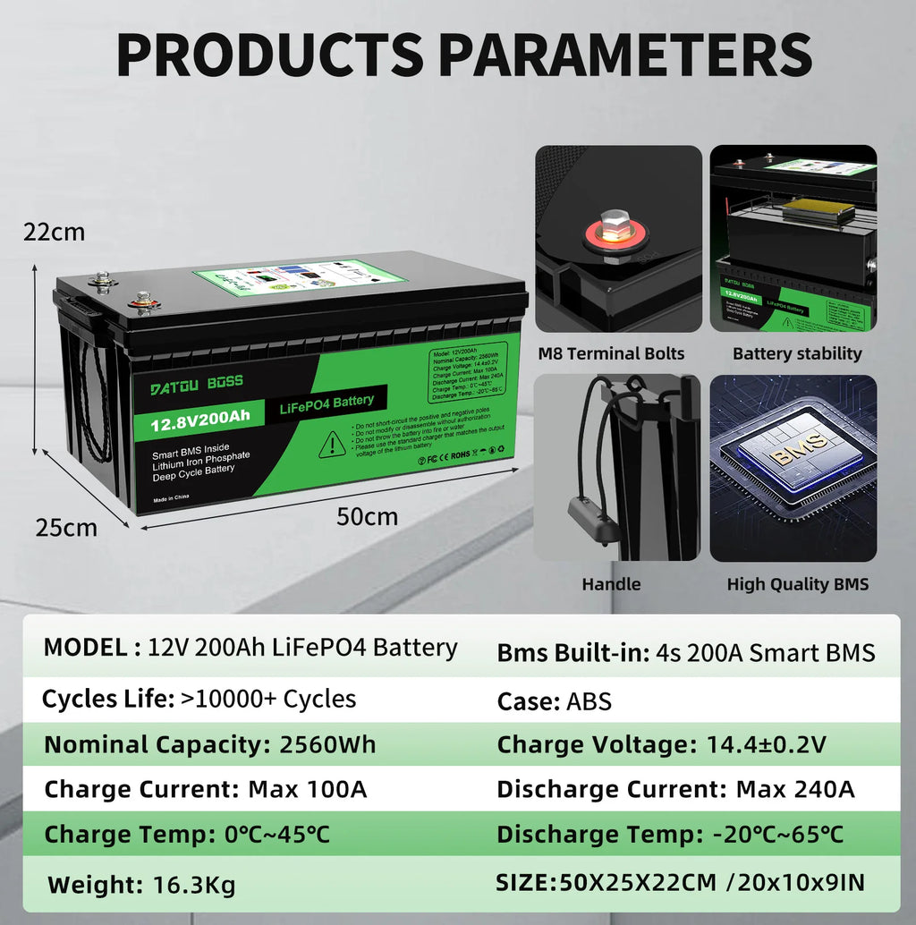DATOUBOSS 12V 100Ah LiFePO4 Battery 1280Wh Lithium Battery with Improved 100A BMS 8000-15000 Deep Cycles Support in Series/Paral