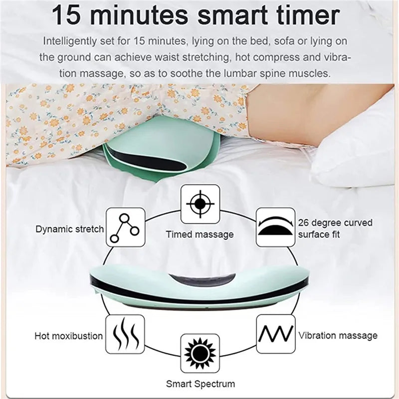 Use in Multiple Scenarios: The lumbar massager comes with an auxiliary board, which can be used according to different scenarios.You can use the auxiliary board to increase the height in soft scenes.You can stretch your waist, use hot compresses and vibration massage to soothe your lumbar muscles while lying on the bed or sofa.