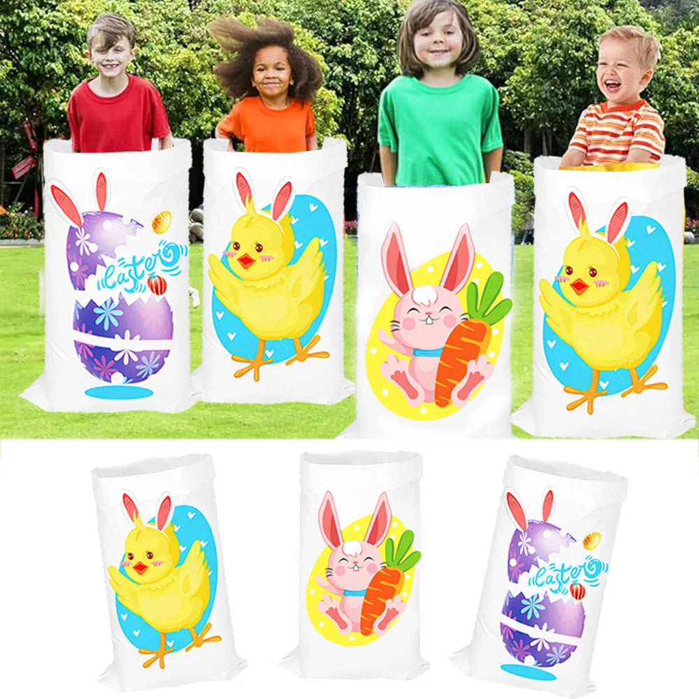 Happy Easter Party Jumping Bag Cute Cartoon Rabbit Chick Egg Pattern Potato Sack Race Bag Outside Field Games for Kid and Family