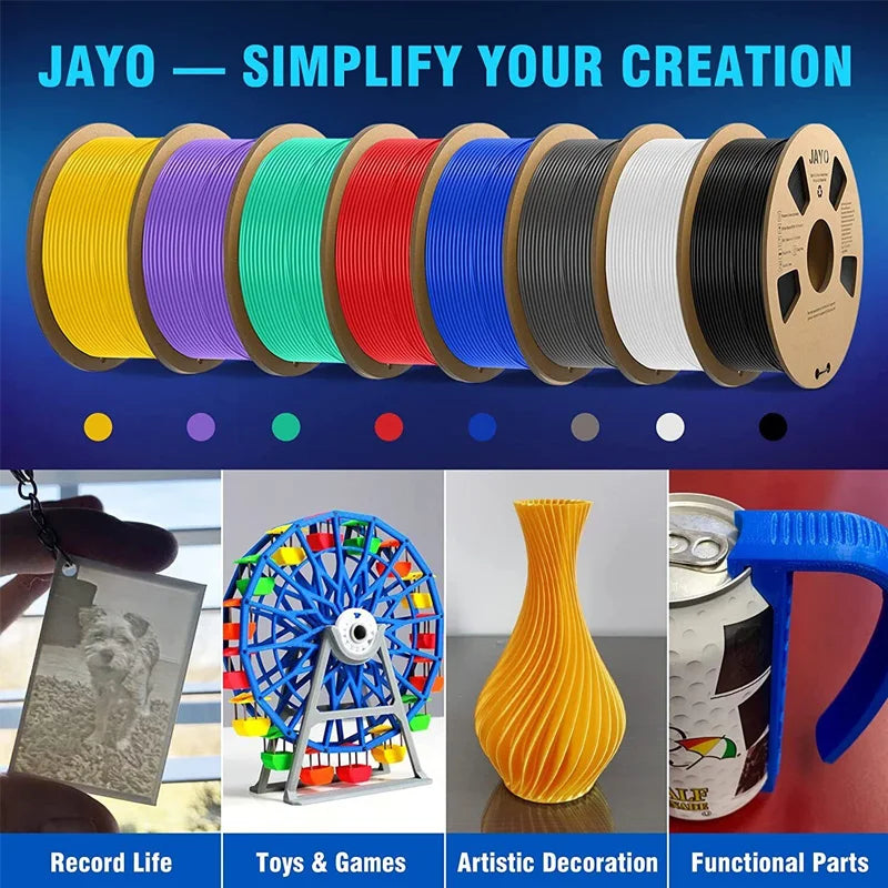 【Strong compatibility】- JAYO 3D Filament is not only applicable to all JAYO 3D printing products: FDM 3D Printer, 3D Printer Accessories, Filament Dyer, but also applicable to almost all FDM 3D printers of other brands. For example: Ender 3/Ender 3V2, etc.