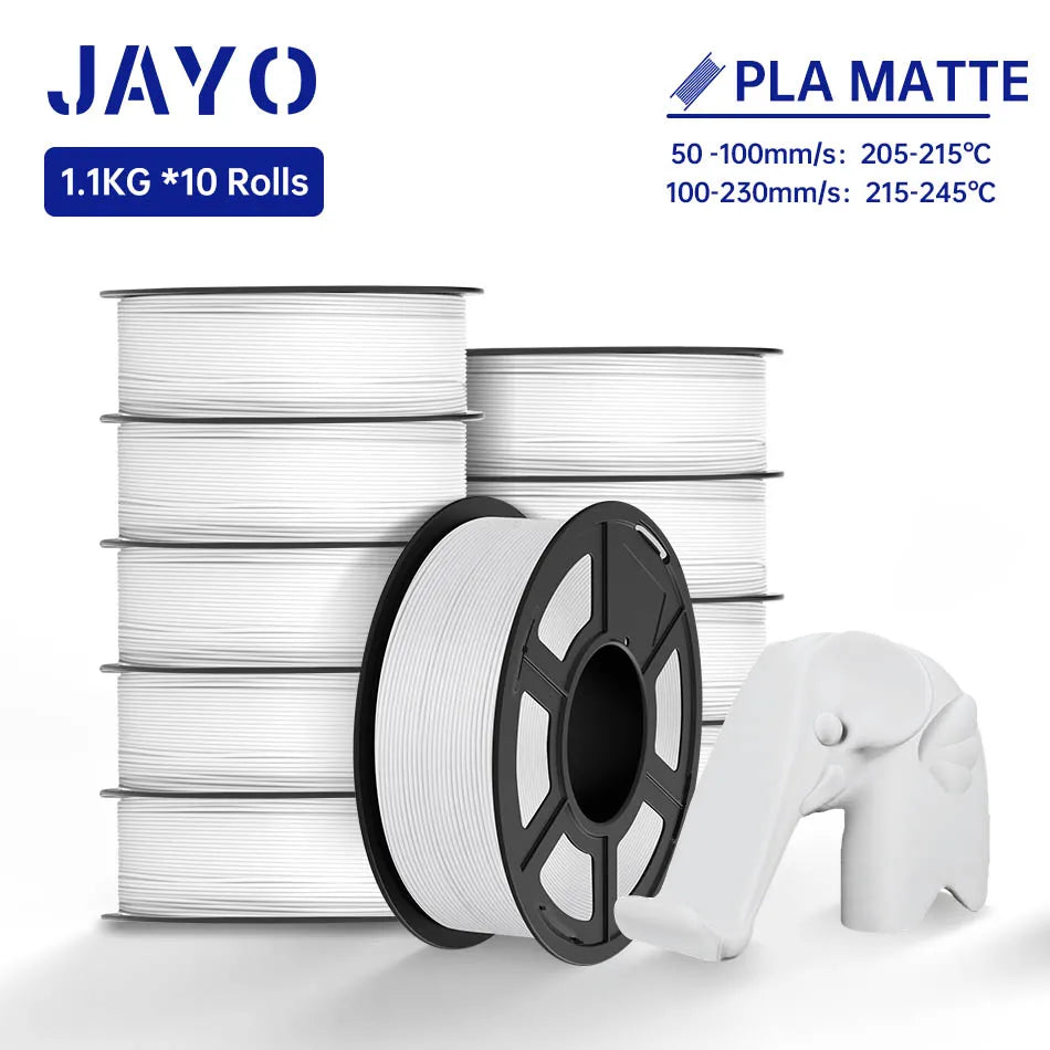 1. 【PLA Features & Matte Color】- JAYO's newly upgraded Matte PLA Filament colors retain the original JAYO PLA advantages: Easy Printing, No Clogging, while adding more color options. Matte PLA can print prints with non-glossy colors and frosted textures, suitable for more premium and mysterious 3D models.