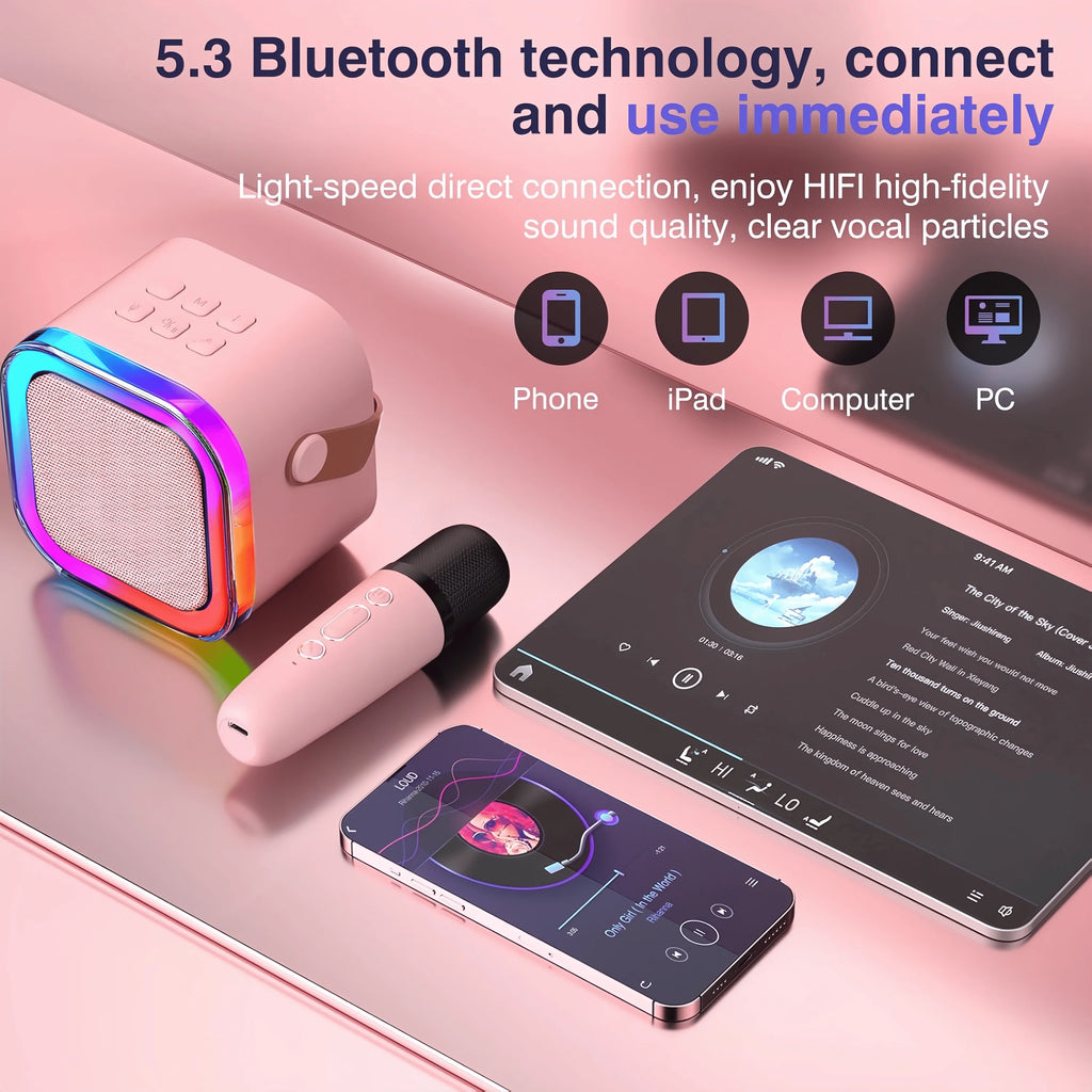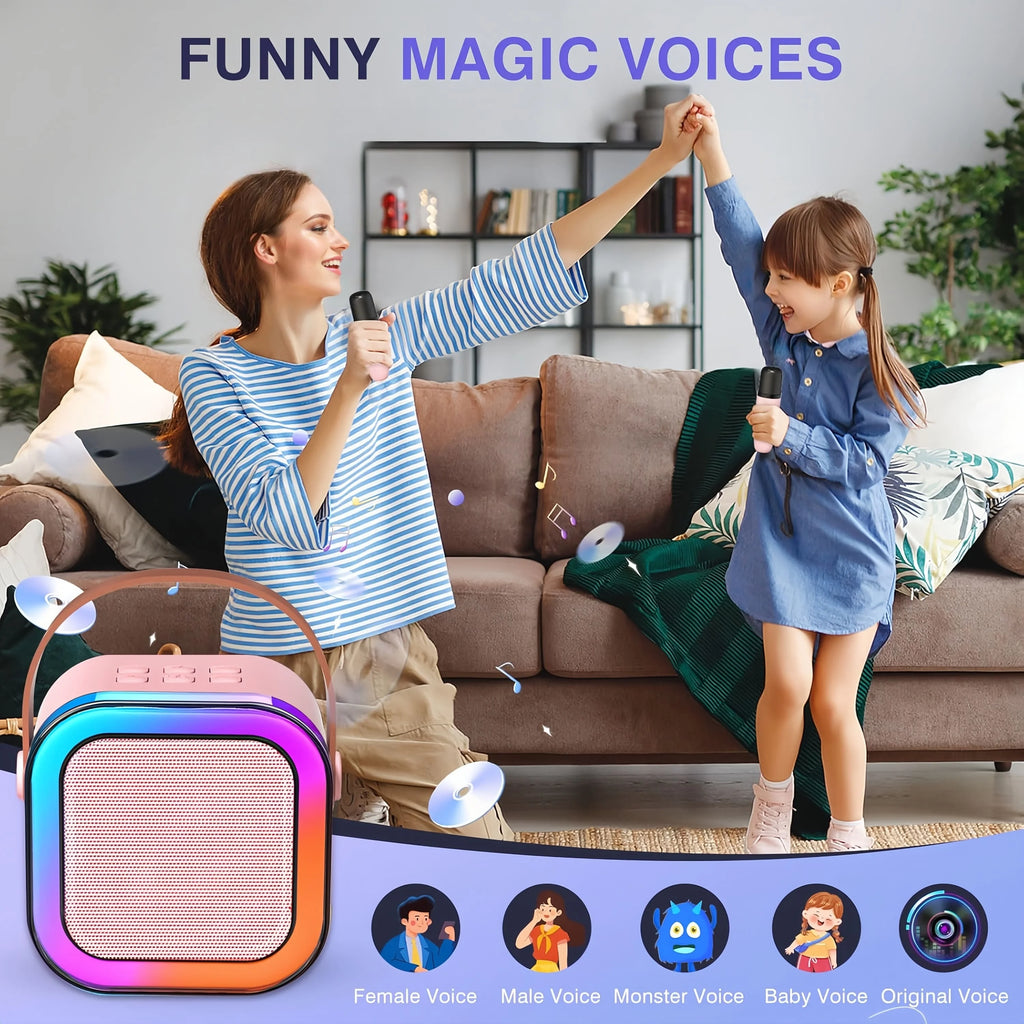 K12 Karaoke Machine Portable Bluetooth 5.3 PA Speaker System with 2 Wireless Microphones Home Family Singing Children's Gifts