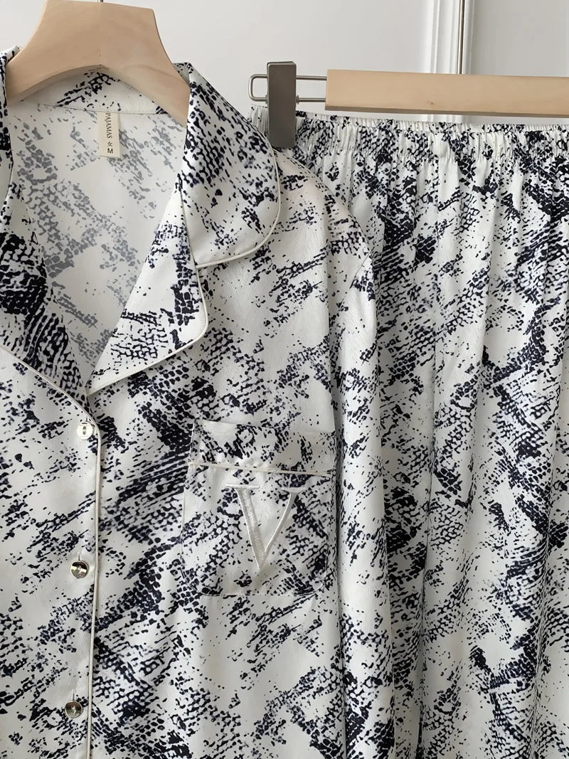 Loose Casual Home Wear Loungewear Fashion Snake Skin Texture Printed Trouser Suits New Female 2Pcs Pajamas Set Pyjama Pour Femme