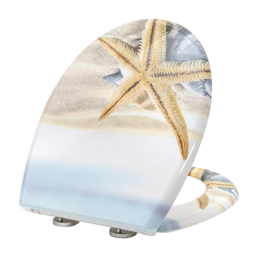 • High-quality materials: the toilet seat is made of Duroplast. Its surface resembles ceramic glazes, is smooth, antibacterial and easy to clean. The hinges that connect the toilet lid and the toilet are made of stainless steel, sturdy and durable. In addition, due to its printing, the seat has a beautiful and fashionable appearance and is a good decoration for your bathroom
