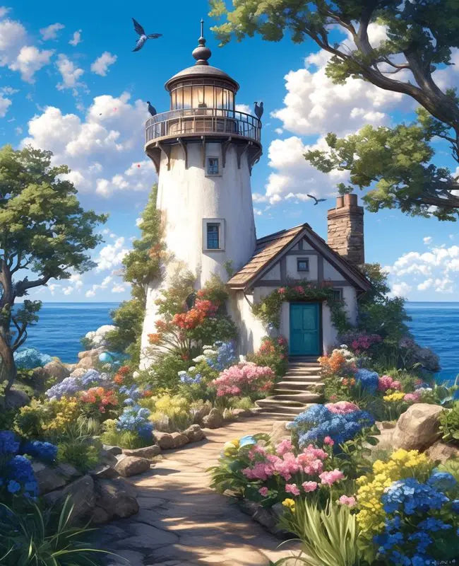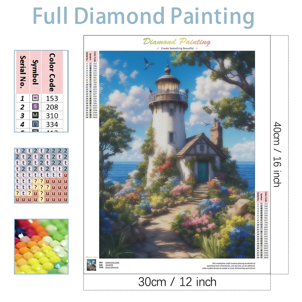 PhotoCustom Full Round Diamond Painting Lighthouse Scenery Picture Of Rhinestones 5d Diy Home Decorative Friend Gift