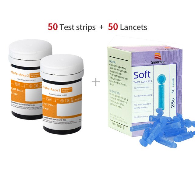 200/100/50pcs for Safe-Accu2 Sinocare Blood Glucose Test Strips and Lancets for Diabetes Tester Blood Sugar Meter