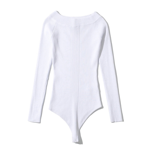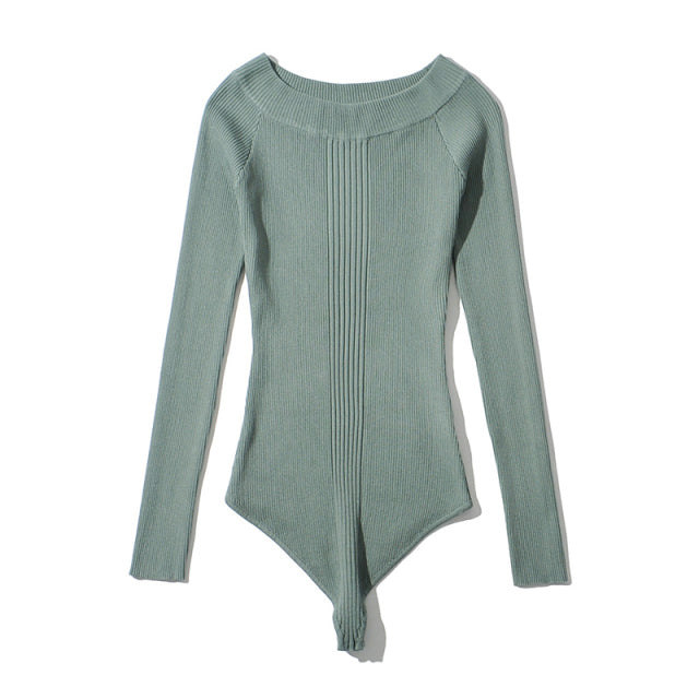 Aachoae Women Sexy Off Shoulder Knitted Bodysuit 2021 Solid Long Sleeve Bodycon Jumpsuit Streetwear Casual Slash Neck Playsuit