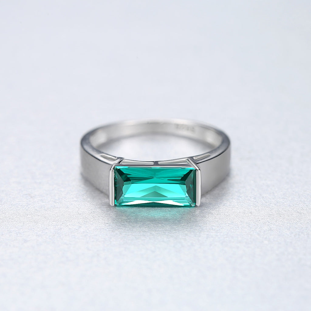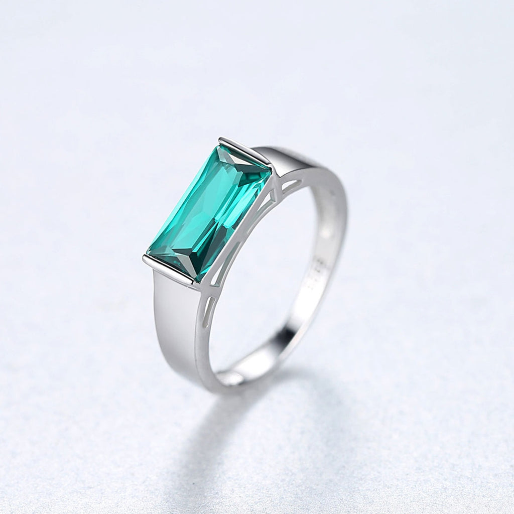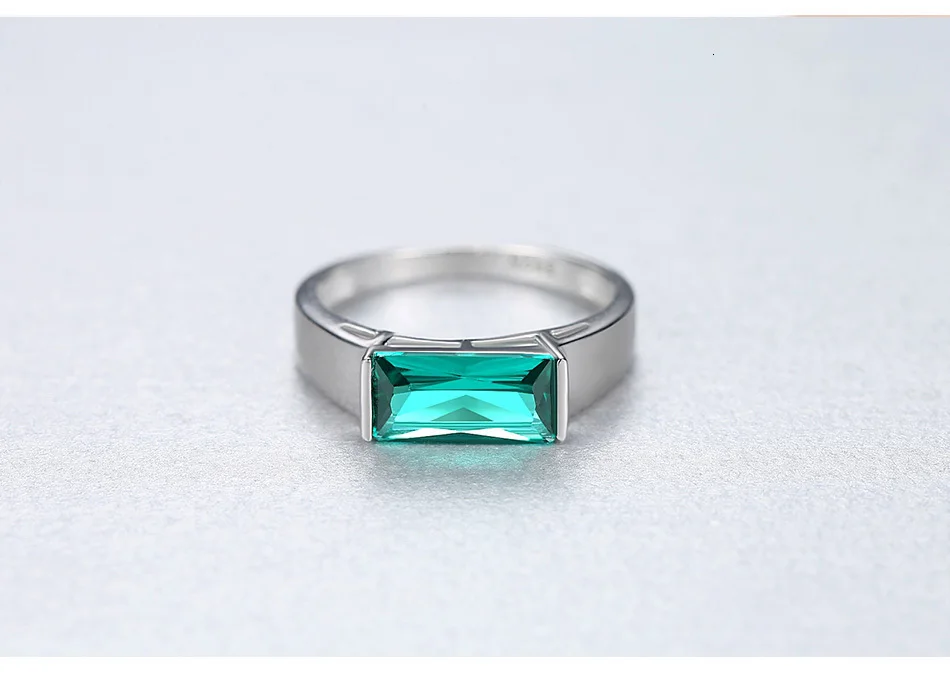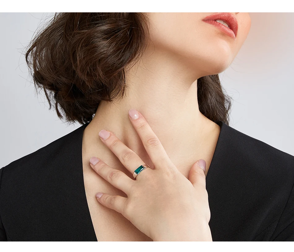 CZCITY 925 Sterling Silver Luxury Green Square Geometric Topaz Rings Trendy Party Wedding Bridal Fashion Jewelry Christmas Gifts