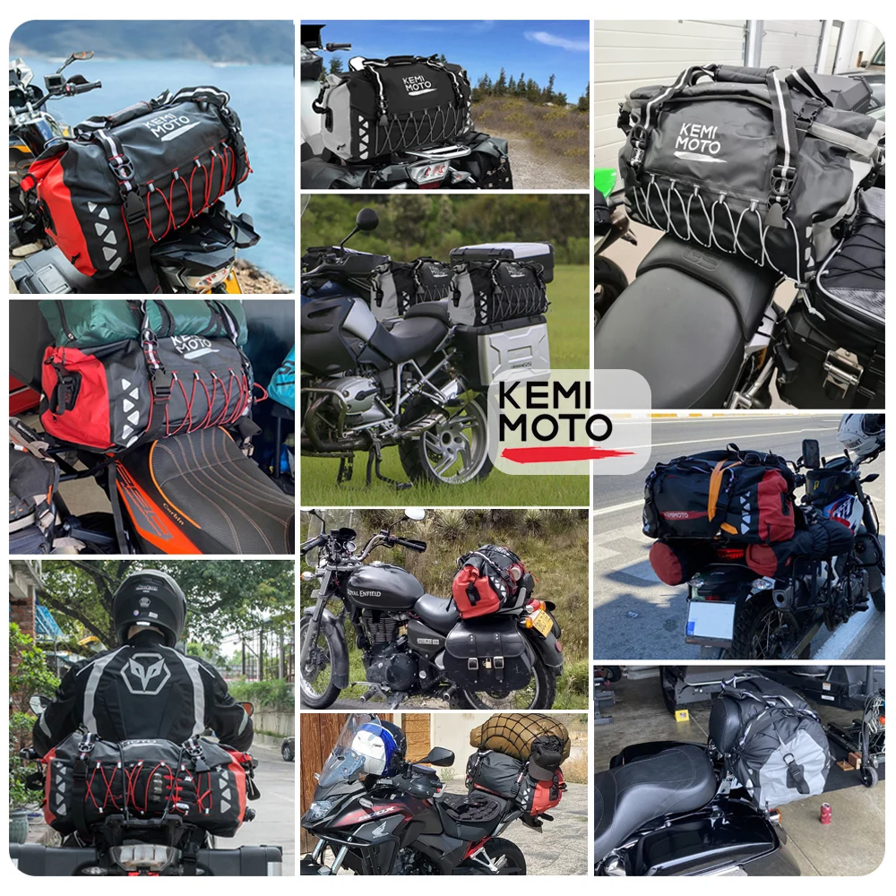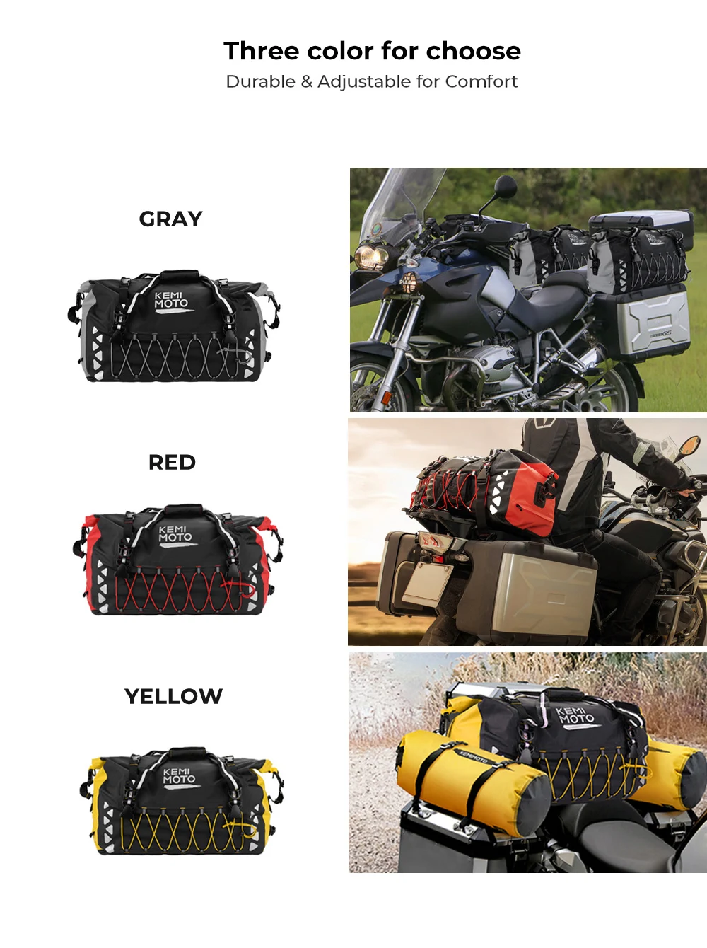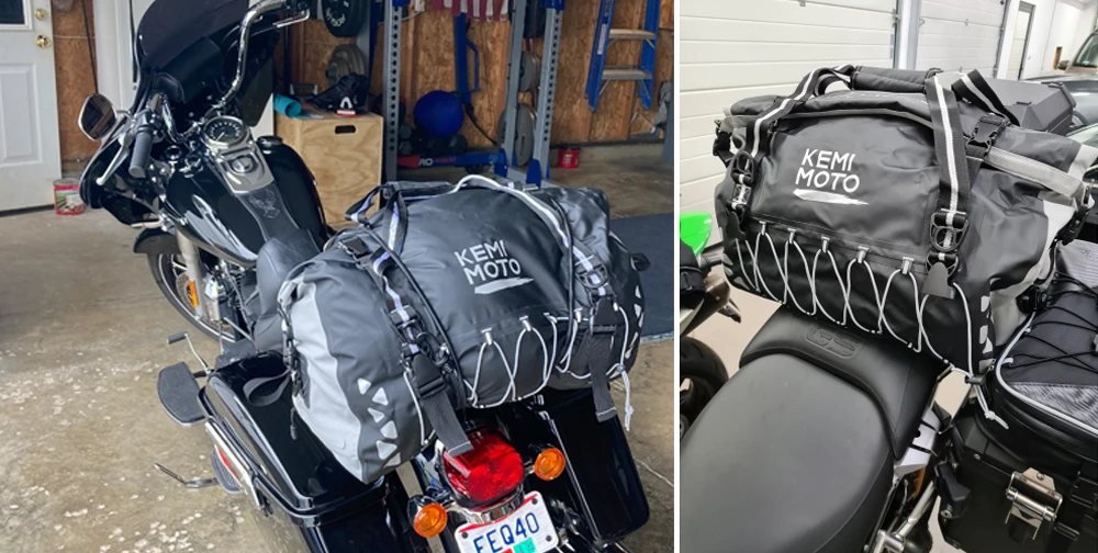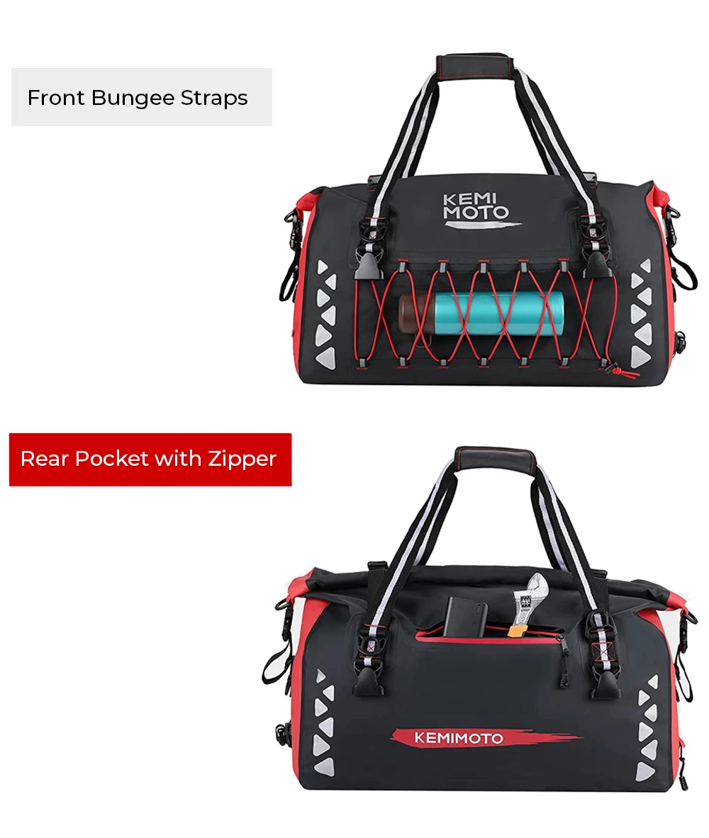 [ Large capacity and fixable ] - It can hold heavy winter warm items such as helmets, down jackets, windproof jackets, gloves, and hats. Motorcycle roll bag comes with 2 tightening straps and elastic hook straps, which provide anchor points when rowing, kayaking, rafting or riding a motorcycle, which can be locked.