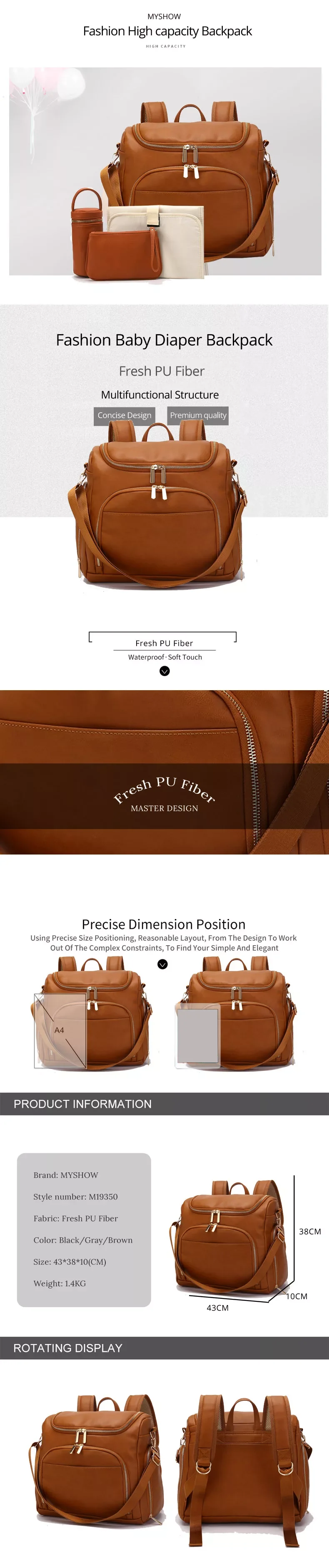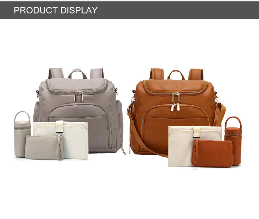 PU Leather Baby Nappy Diaper Bag Backpack+Changing Pad+Stroller Straps+Insulation bag+Cosmetic bag