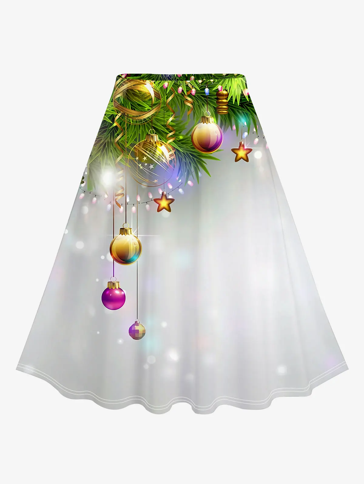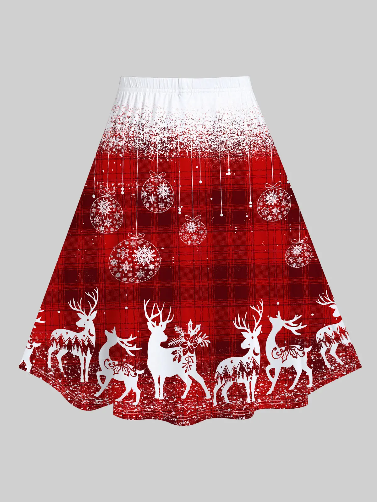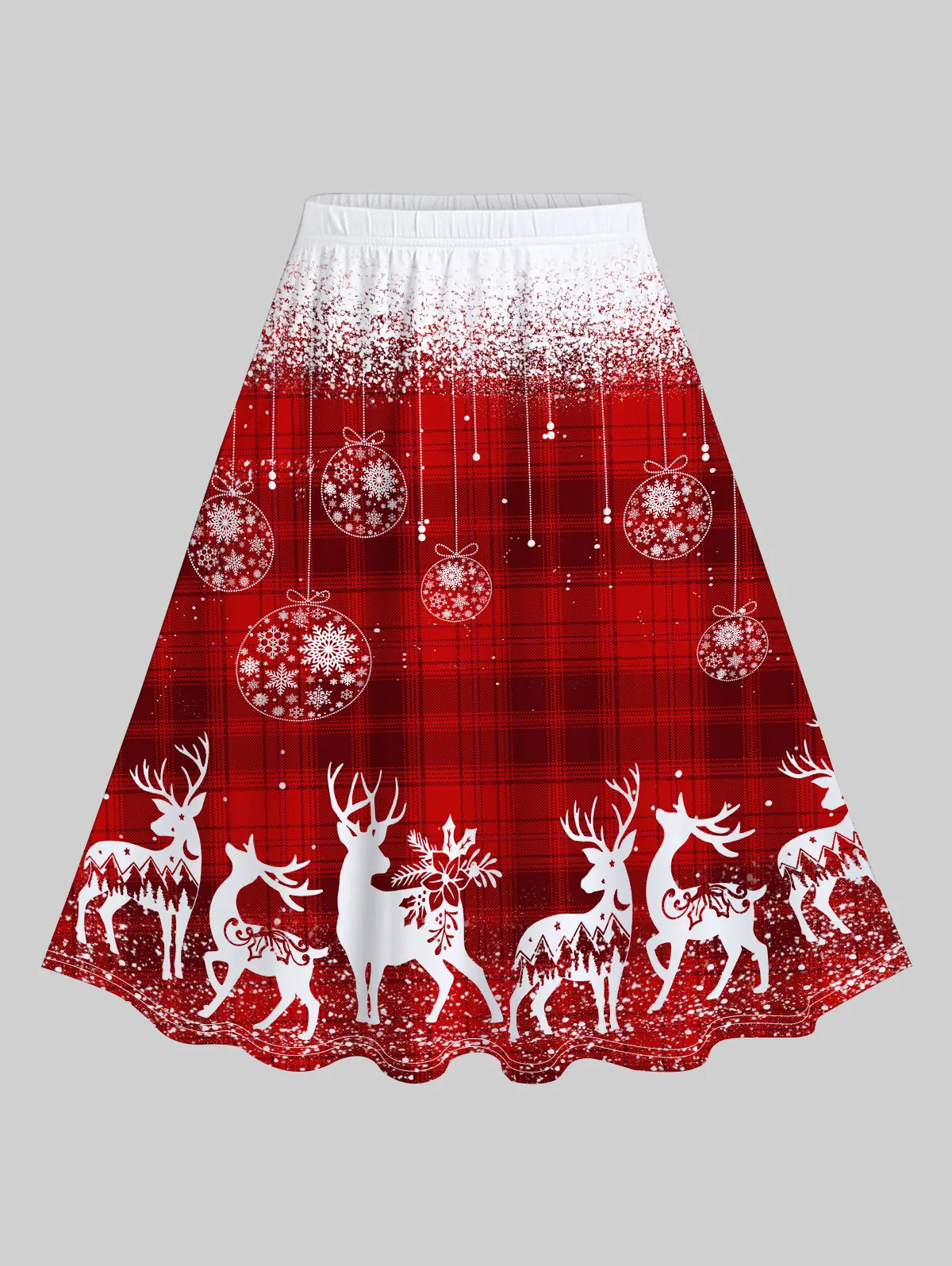ROSEGAL Plus Size Fashion 3D Printed A Line Skirts Women Basics High Rise Skirt Christmas Ball Elk Snowflake Graphic Skirt S-5XL