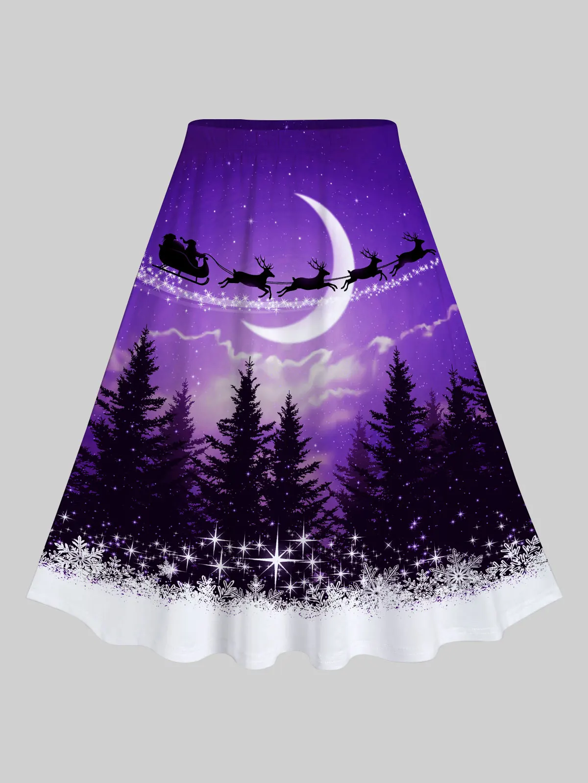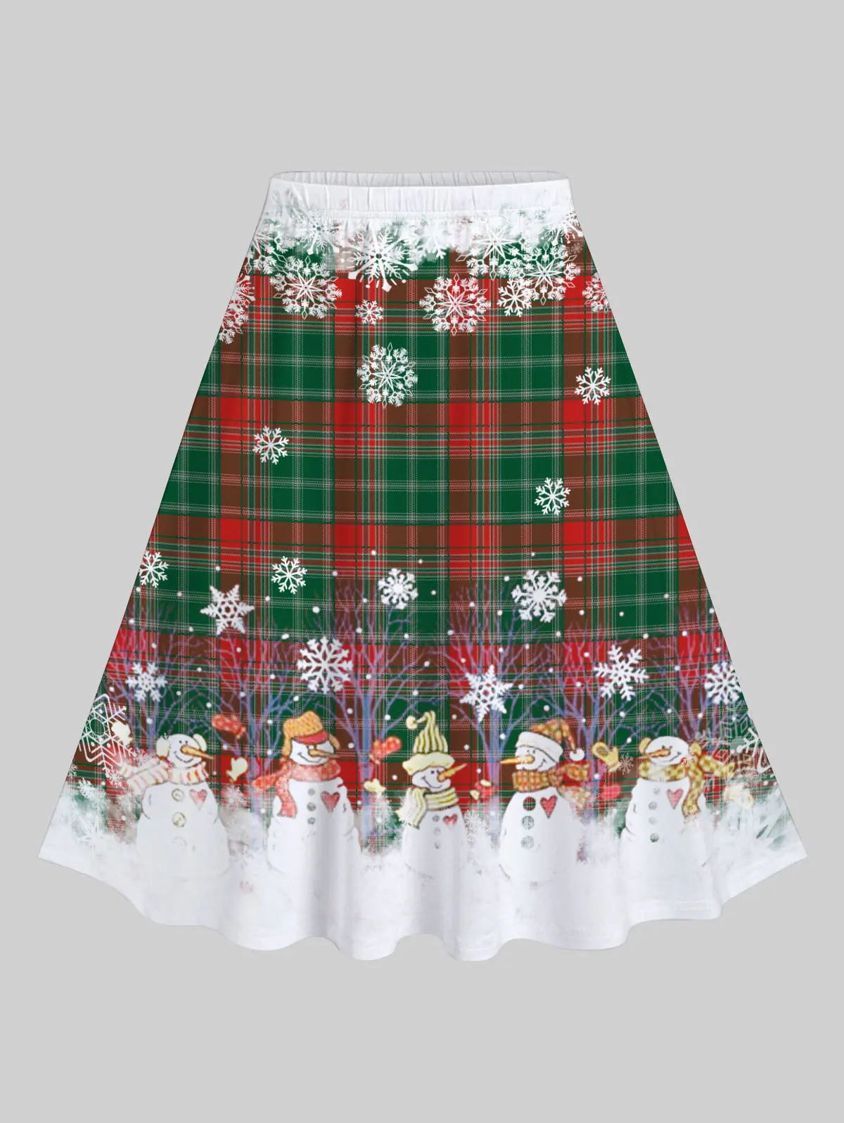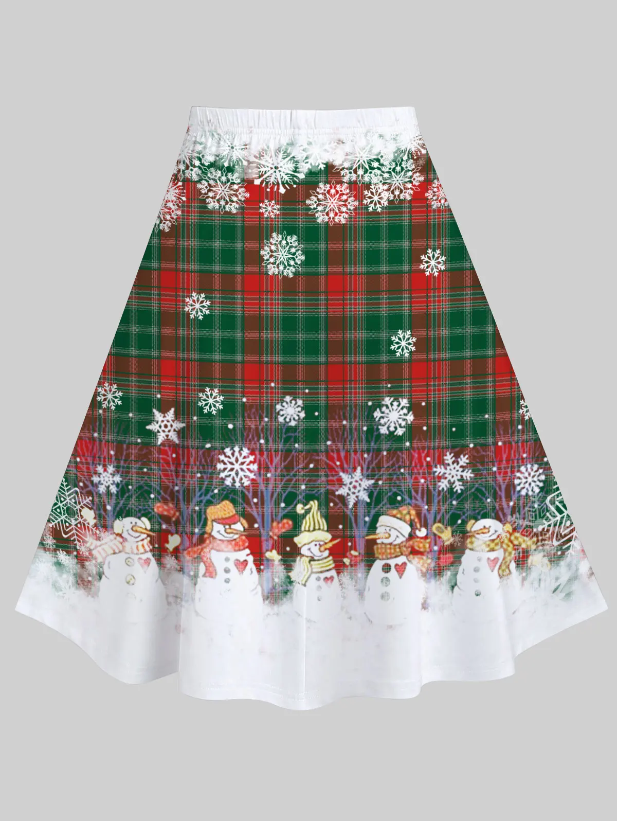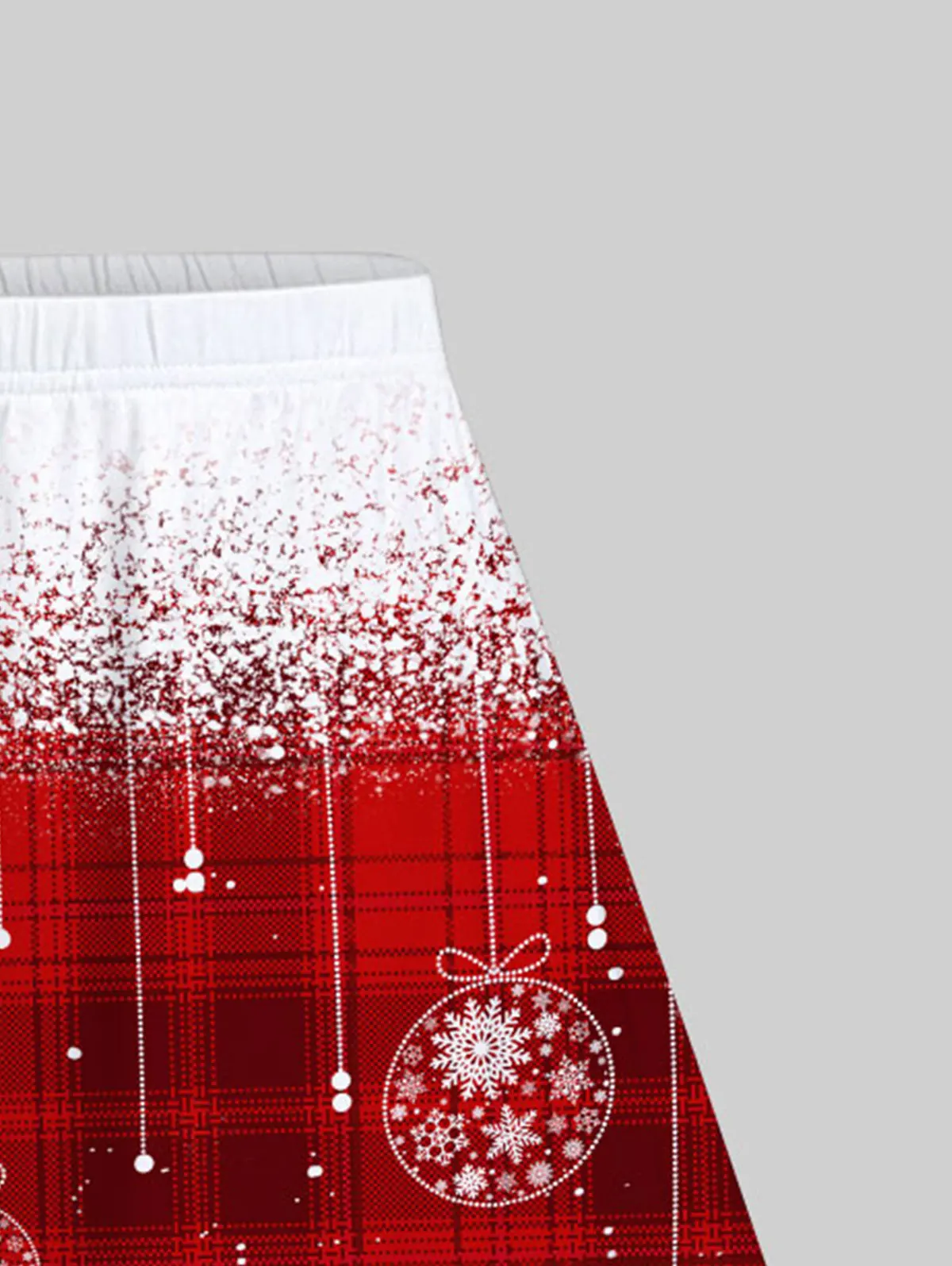 ROSEGAL Plus Size Fashion 3D Printed A Line Skirts Women Basics High Rise Skirt Christmas Ball Elk Snowflake Graphic Skirt S-5XL