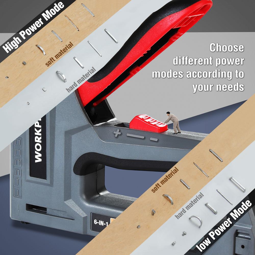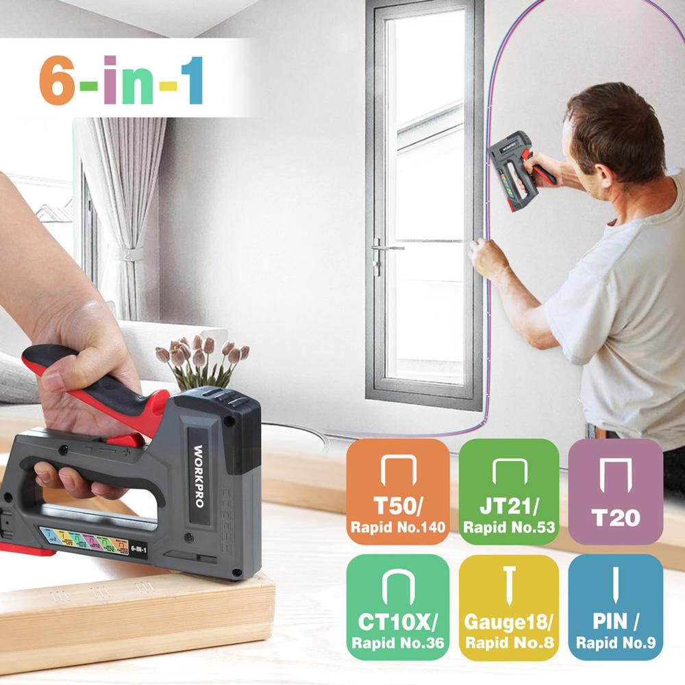 WORKPRO 6 in 1 Stapler Nail Gun Manual Staple Gun Stapler Upholstery Plastic Furniture Nailer Tool Heavy Duty Stapler for Home