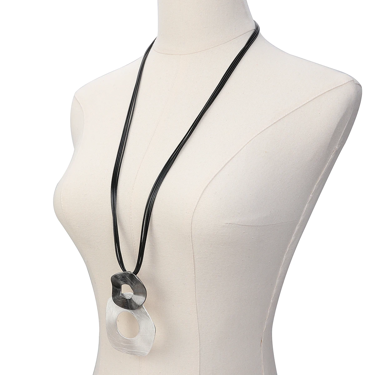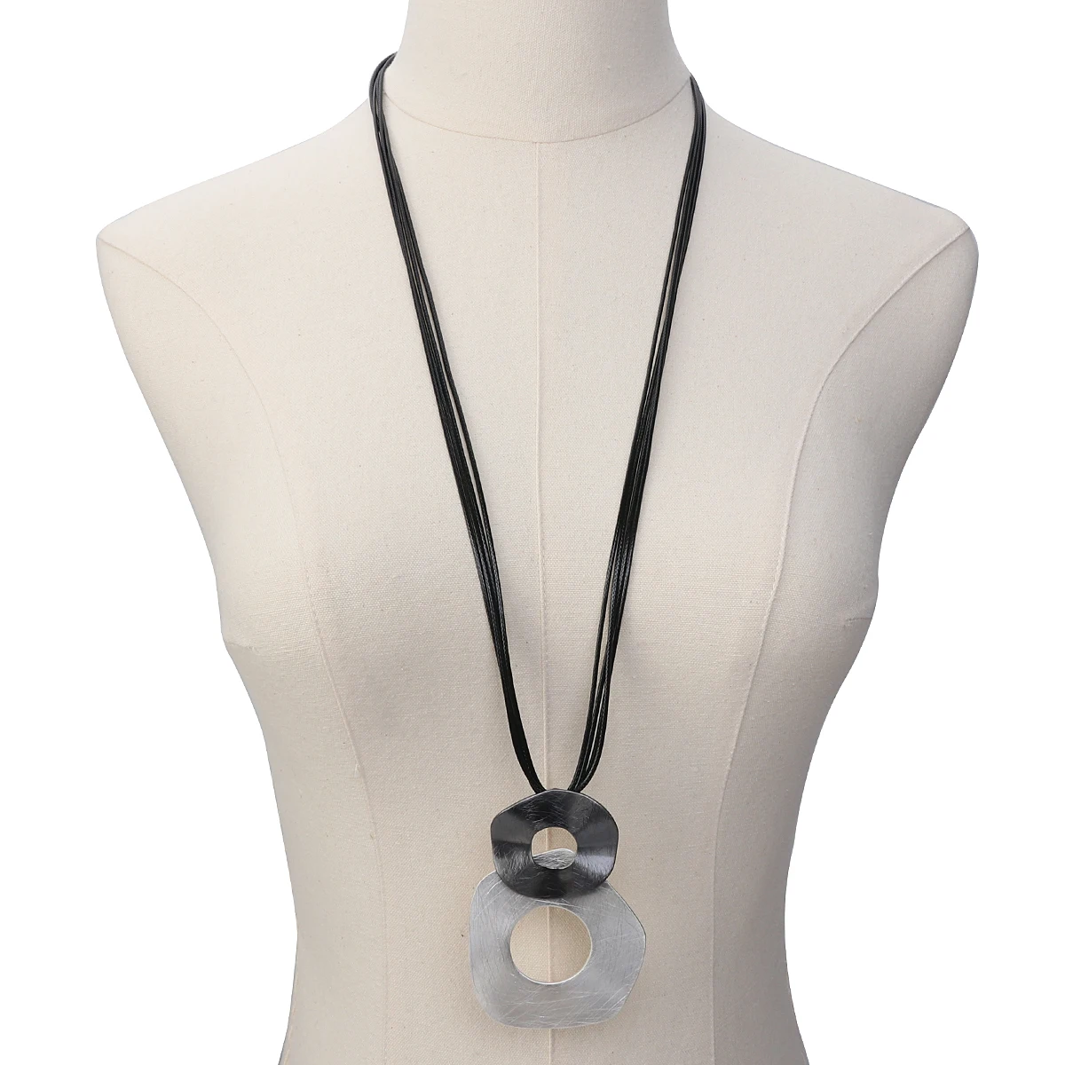 ALLYES Irregular Hollow Metal Circles Pendant Necklaces for Women Fashion Sweater Chain Long Leather Necklace Female Jewelry