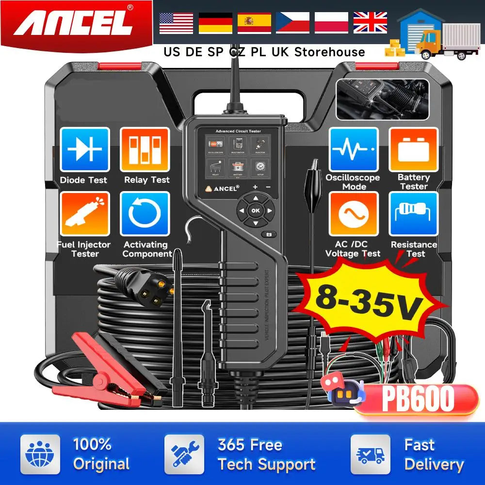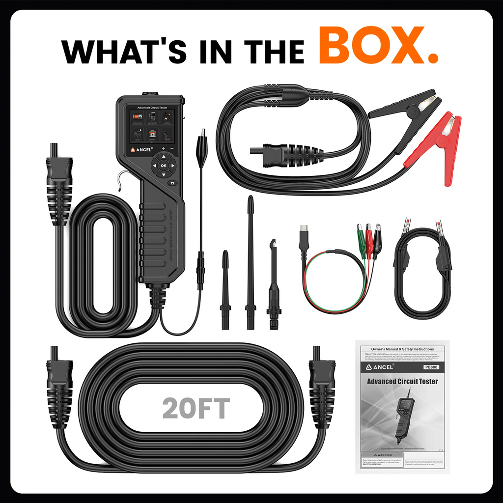 ANCEL PB600 Power Circuit Probe Kit - Automotive Circuit Tester with 2024 Online Update, 9~30V Voltage Range, Multimeter, Relay Test, Fuel Injector Tester, Activating Component, Oscilloscope Mode