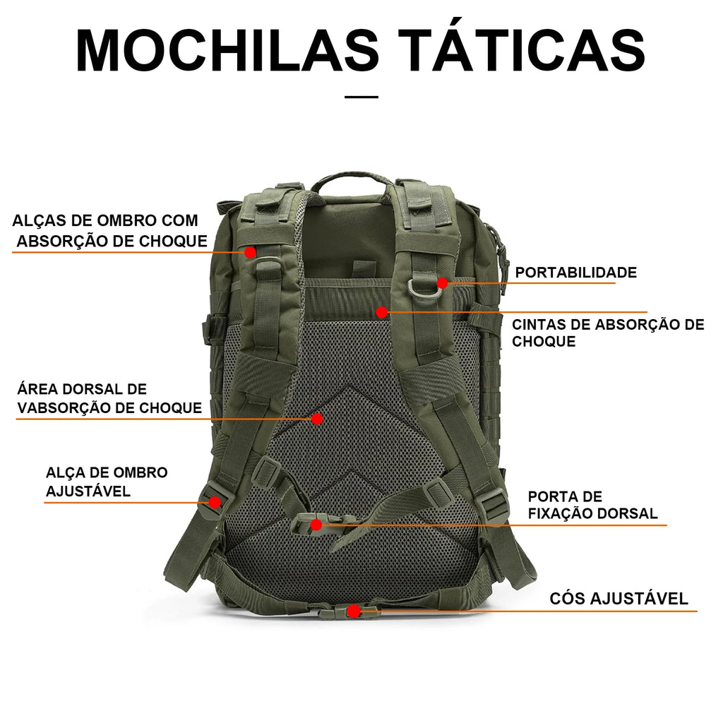 MODULAR MOLLE DESIGN: The tactical backpack molle has MOLLE system throughout. The Molle straps of this military MOLLE backpack work perfectly for attaching additional Molle tactical bags, the front part, both sides, bottom and shoulder straps come with Molle fastening straps, The shoulder straps with two D-rings for hanging something and the straps on the bottom can be used to hold a tent, a sleeping mattress or other equipment for outdoor activities.