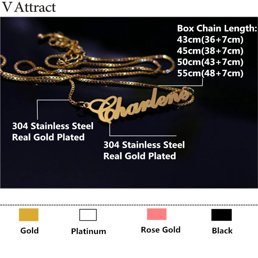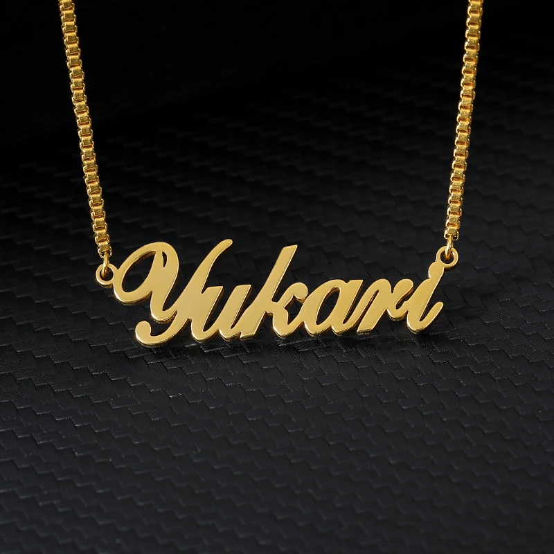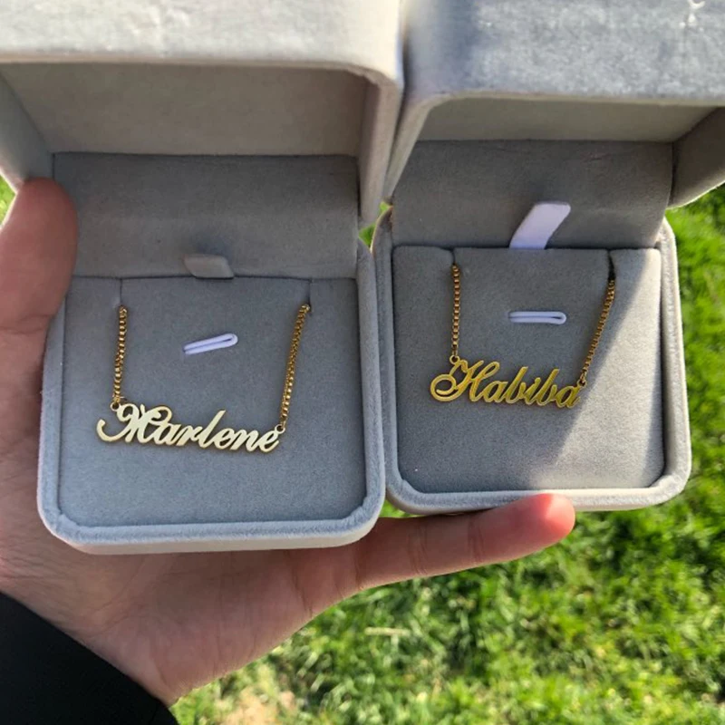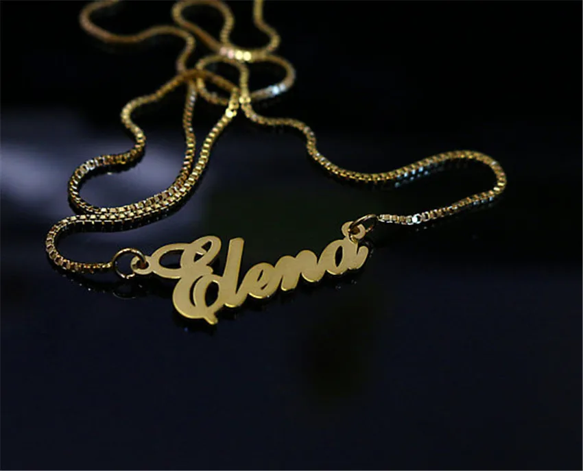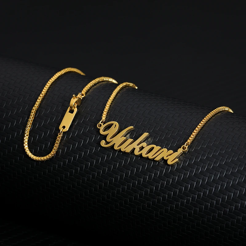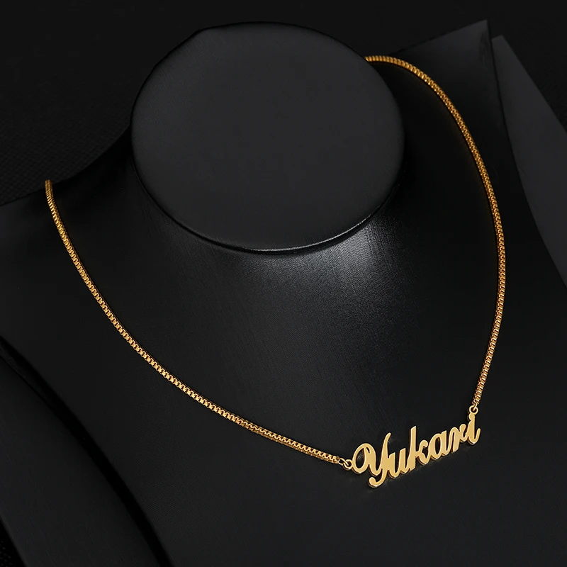 Custom Name Necklace Stainless Steel Long Box Chain Necklace Women Personalized Bridesmaid Christmas Gift Nameplate Mujer