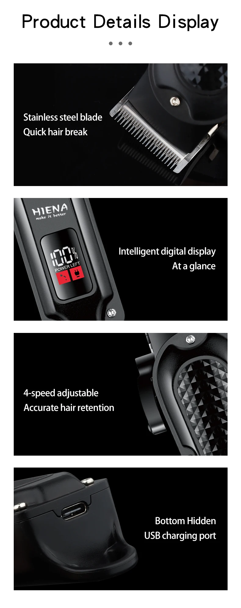 Hiena HYN-212 Electric Hair Clipper UBS Rechargeable Cordless Beard Trimmer Men Powerful Electric Hair Clipper Trimming Tool