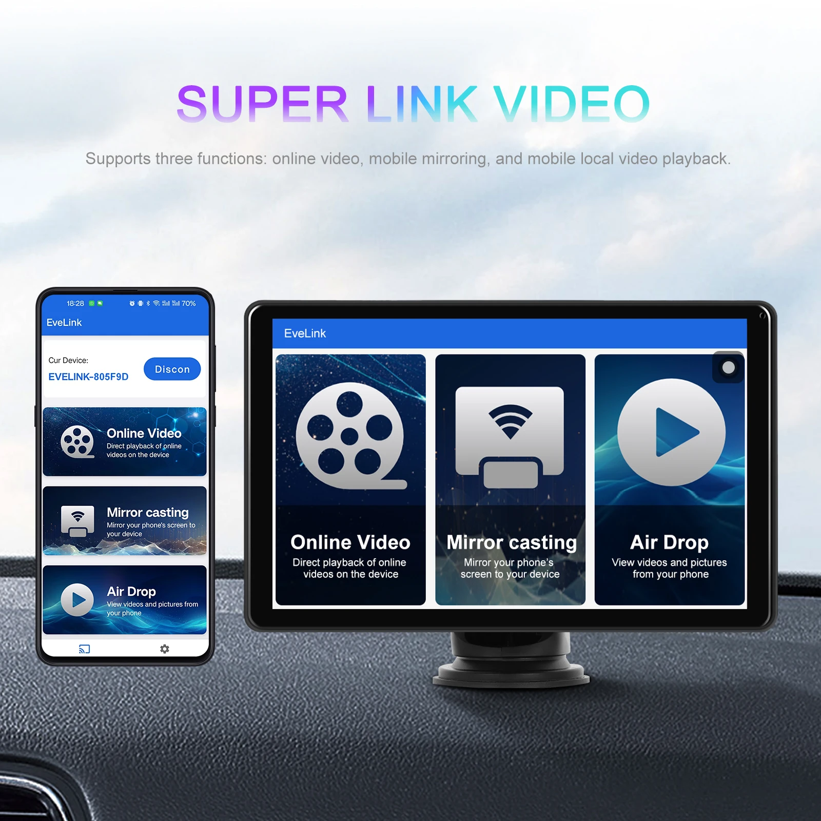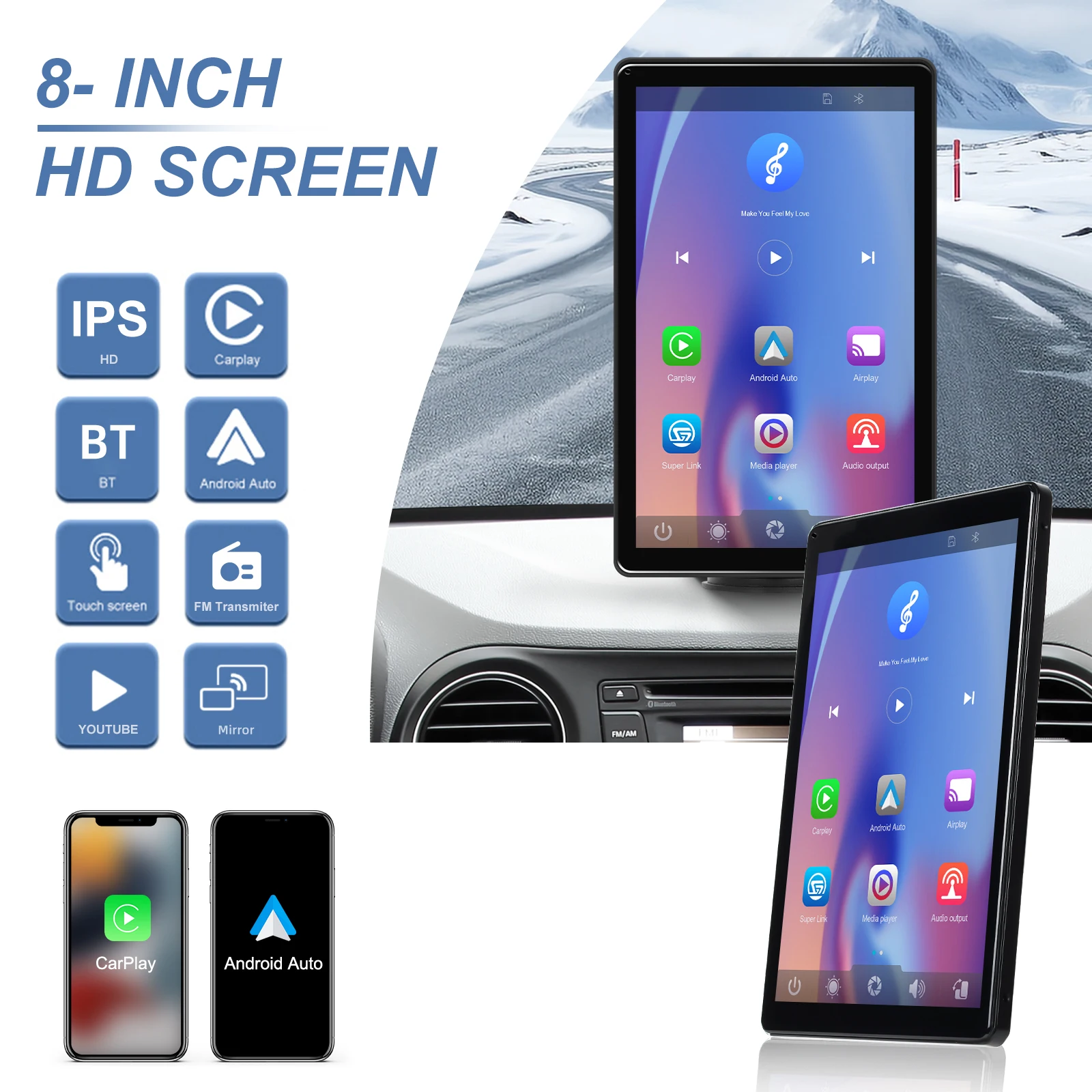 Intelligent interconnection: support IOS CarPlay/Android Auto/Bluetooth/FM transmission/Airplay/Android Cast