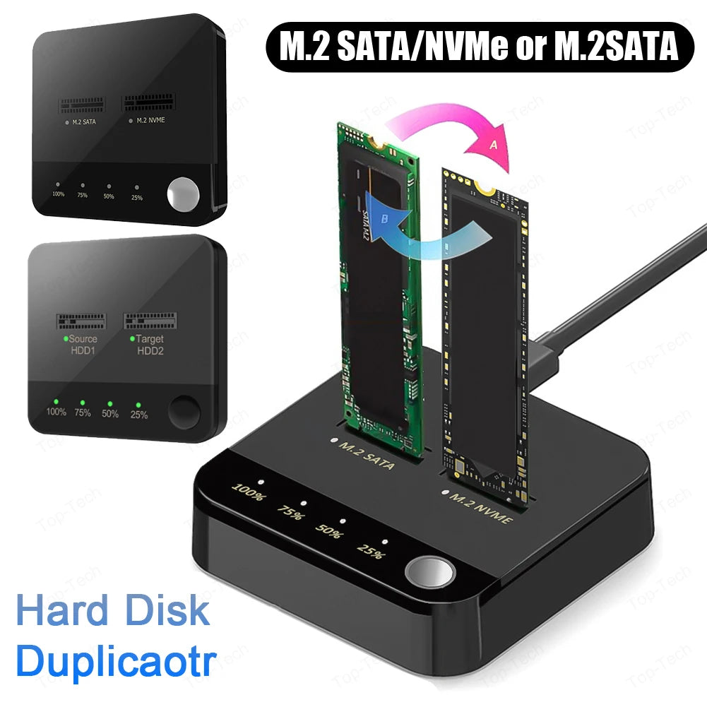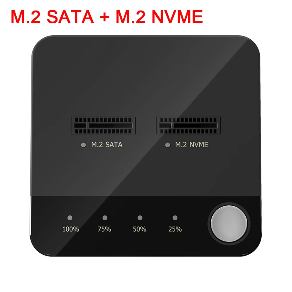 M.2 SATA/NVMe Dual-Bay Hard Drive Docking Station Clone Duplicaotr Offline Clone M.2 Cloner Data Transmission with LED Indicator