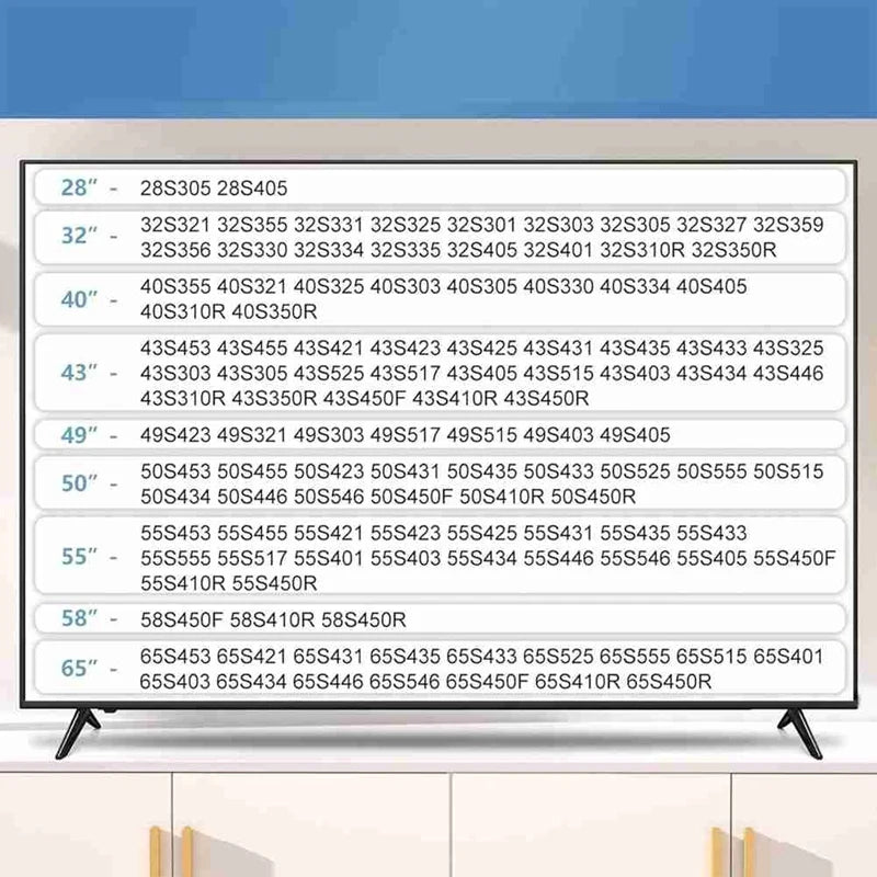 Compatibility - TV stand legs for TCL TV 28S305 28S405 32S355 32S331 32S325 32S301 32S303 32S305 32S327 32S359 32S330 32S334 40S305 40S330 40S334 40S405 43S453 43S455 43S421 43S423 43S425 43S431 43S435 43S433 43S325 43S303 43S305 43S525 49S423 49S303 49S517 50S453 50S455 50S423 50S431 50S435 50S433 50S525 50S555 50S546 55S453 55S455 55S421 55S423 55S425 55S43155S435 55S433 55S525 55S555 55S517 55S401 55S403 55S434 55S446 55S546 65S453 65S455 65S421 65S431 65S435 65S433 65S525 65S555