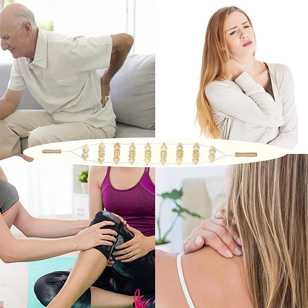 【Comfortable Texture】The balls are made of high-quality logs,which are threaded inside with cotton thread,and covered with a soft plastic tube outside, which is waterproof and mildew proof. And the surface of the material is smooth,so it doesn't hurt the skin while massaging.We also upgraded the handles on both sides for a comfortable grip.