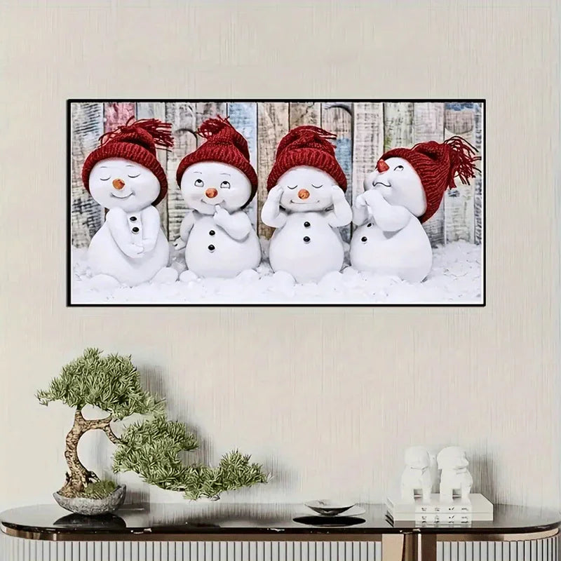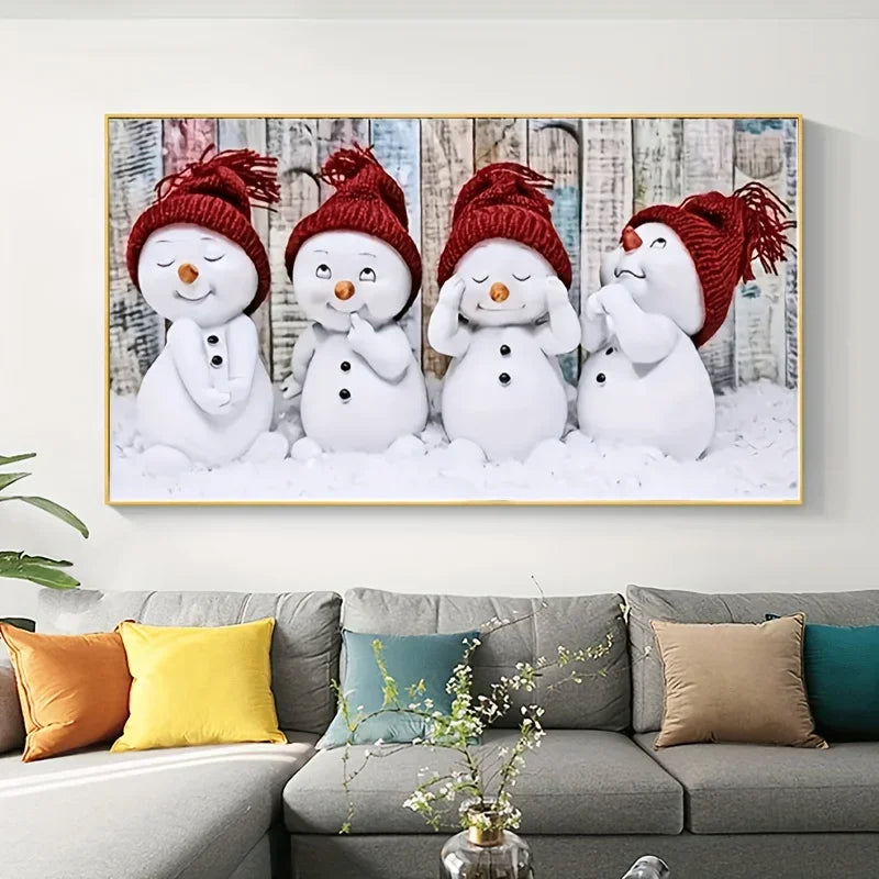 1 Canvas Christmas Snowman Painting Cute Four Snowmen Print Poster Living Room Bedroom Office Home Decorative Painting