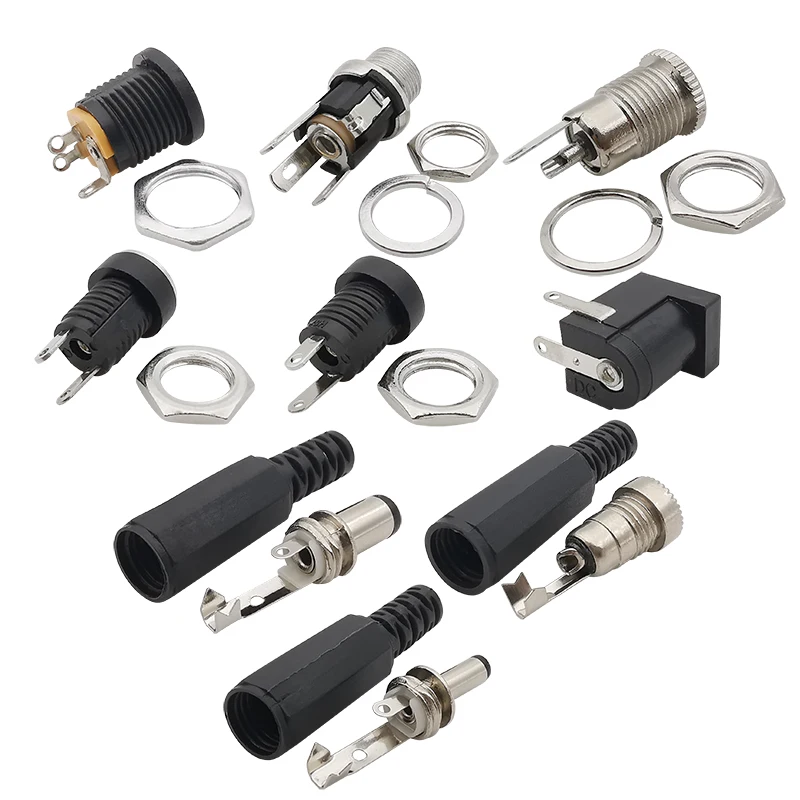 10Pcs DC Power Jack Socket Connector 5.5*2.1mm 3.5x1.3mm Male Female DC005 DC022 DC099 DC plug socket Nut Panel Mount Adapter