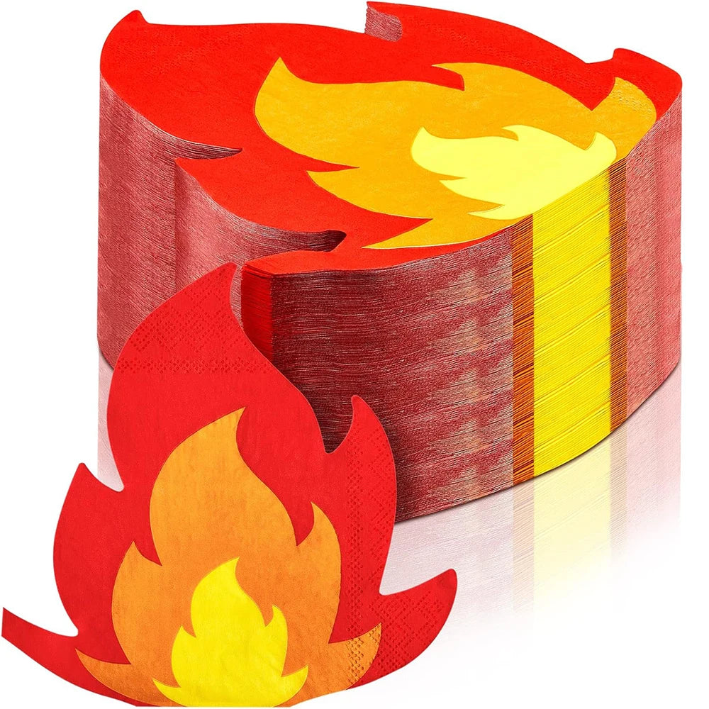 16/32/64 Pcs Fire Napkins Flame Napkins Disposable Paper Napkins for Firefighter Theme Fire Truck Birthday Fireman Party Decors