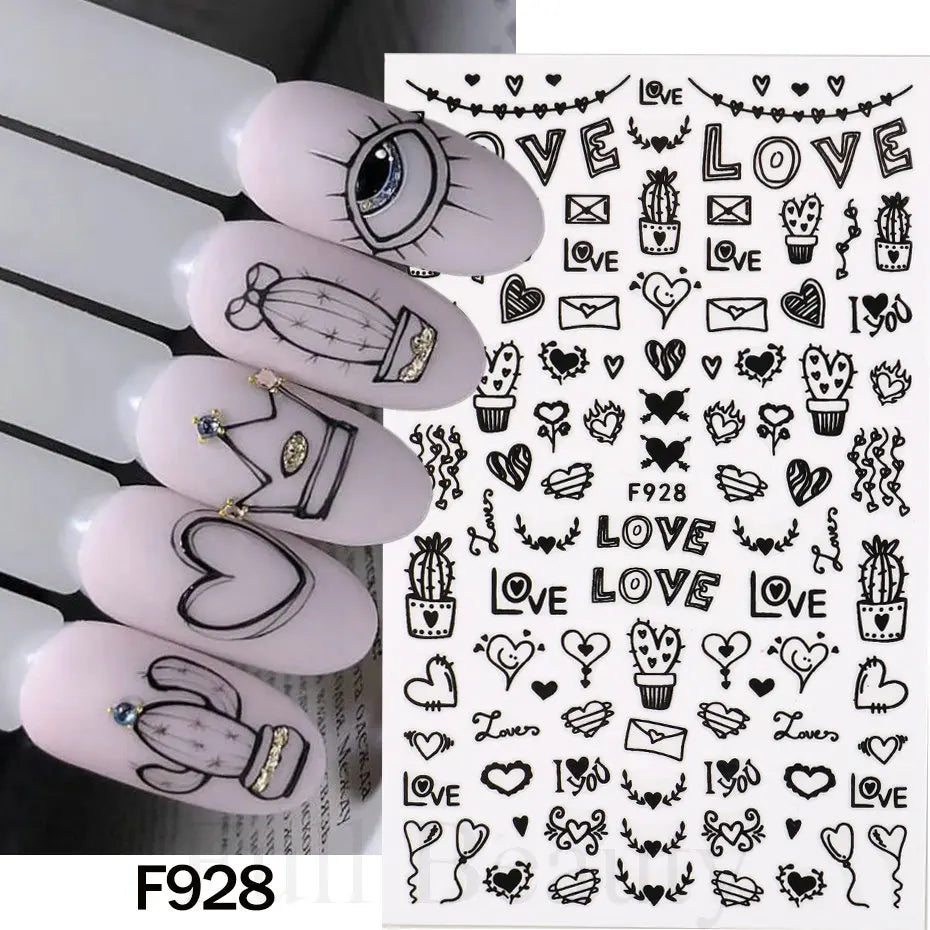 3D Love Adhesive Design Nail Stickers